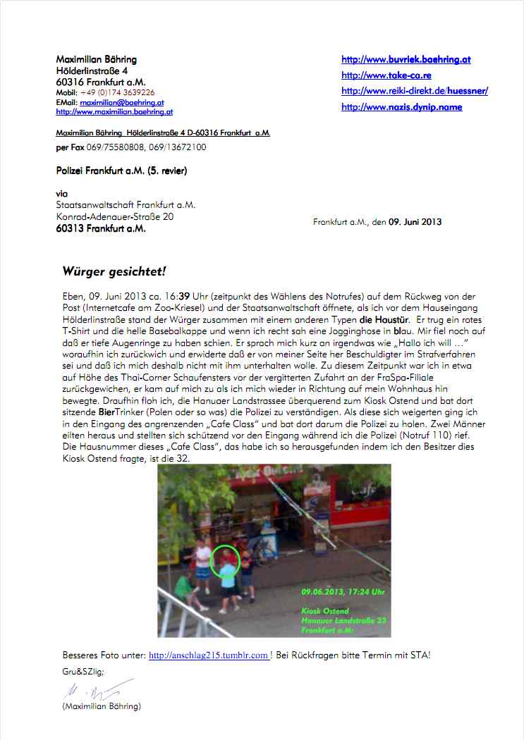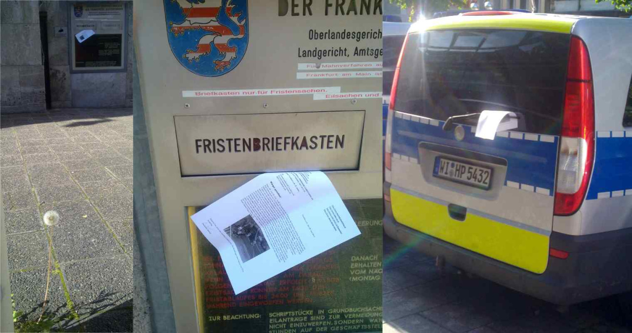 Alle 75 Sekunden landet weltweit ein Unschuldiger in der Psychiatrie. Gesehen auf der Zeil zwischen OLG und Bürgeramt, als ich die Strafanzeige egen dem Ostend persönlich als Strafzettel verteilte damit man sich auf den Verlust von Faxen nachher nicht herausreden kann.