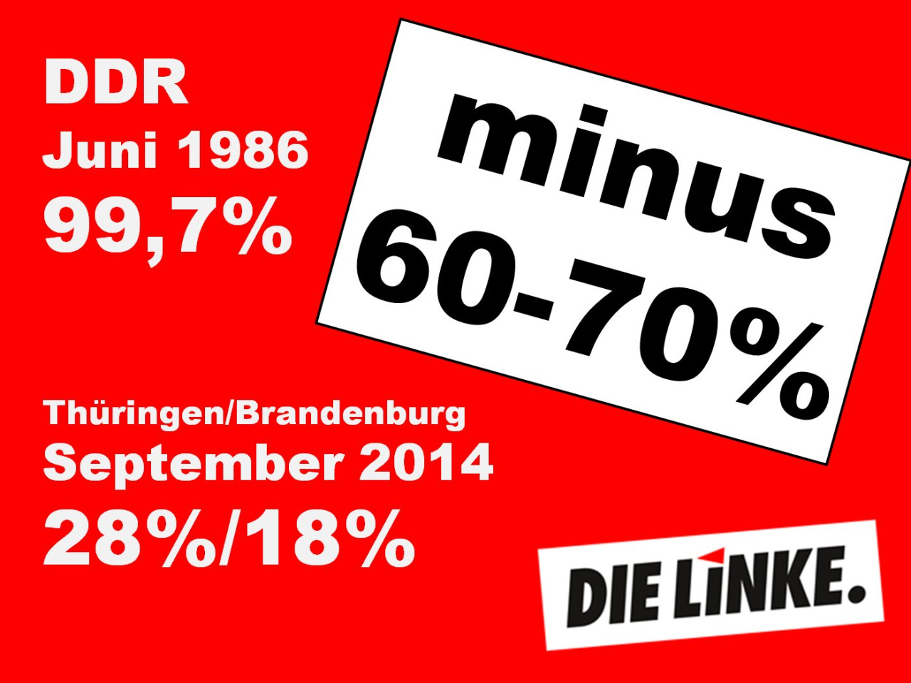 Klarer Wahlverlierer: SED /PDS/?DIE LINKE?/ 1986 noch 99,74% Zustimmung für den Whalvorshclag ?nationakle Front? jetzt nur noch 28 respektive 18% für die Nachfolgeparte ?Die Linke? das ist ein Minus von 60%!