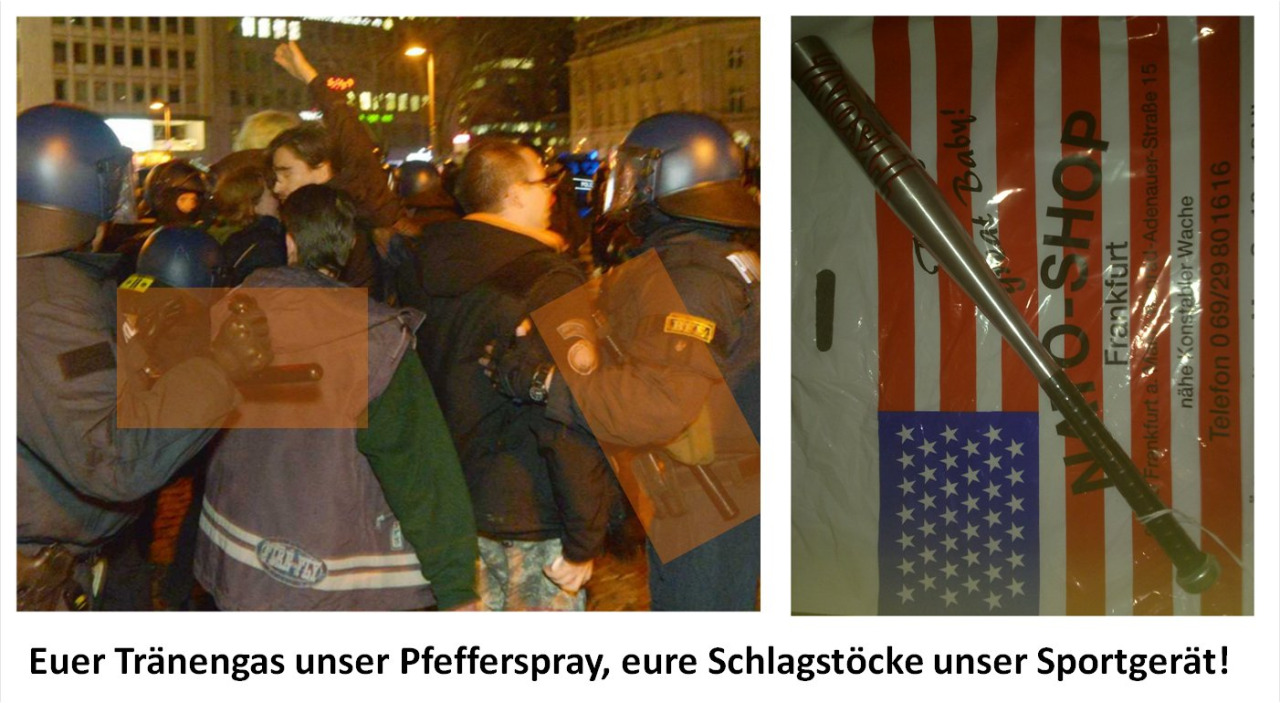 10.03.2015 01:43 ?Bürgerkriegsähnliche Zustände in Frankfurt/M.? Das sind SA-Methoden. Es kotzt mich sowas an wie diejenigen sdie sich Joschka-Fischer zum Vobrild nehemn das Demonstrationsrecht anderer mit Füssen treten! http://www.fnp.de/lokales/frankfurt/Pegida-Heftige-Krawalle-in-Frankfurt;art675,1300845 http://www.pi-news.net/2015/03/buergerkriegsaehnliche-zustaende-in-frankfurtm-pegida-teilnehmer-mit-steinen-beworfen/ [0] "201503100143-113253070713-0.jpg" [1] "201503100143-113253070713-1.jpg" |