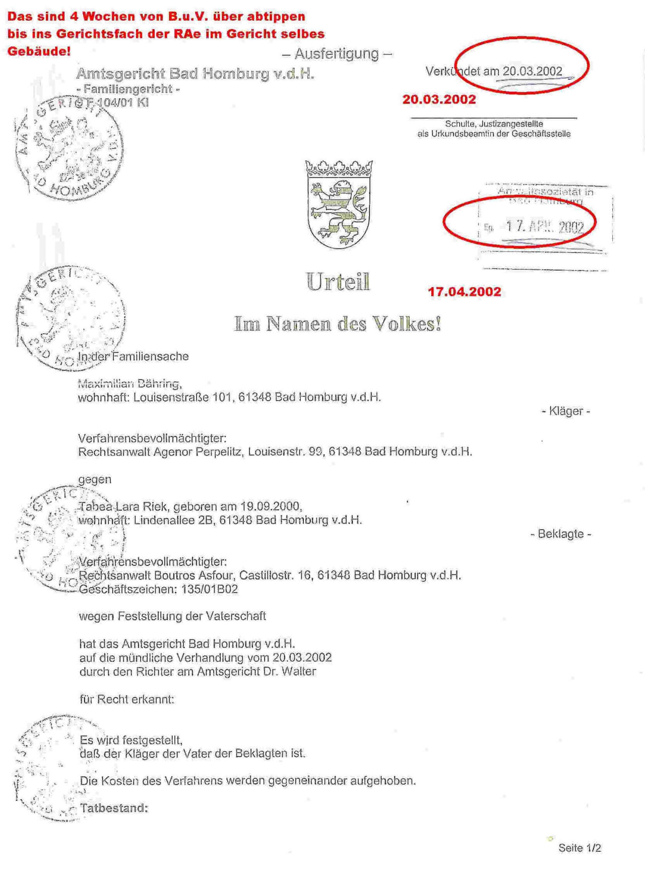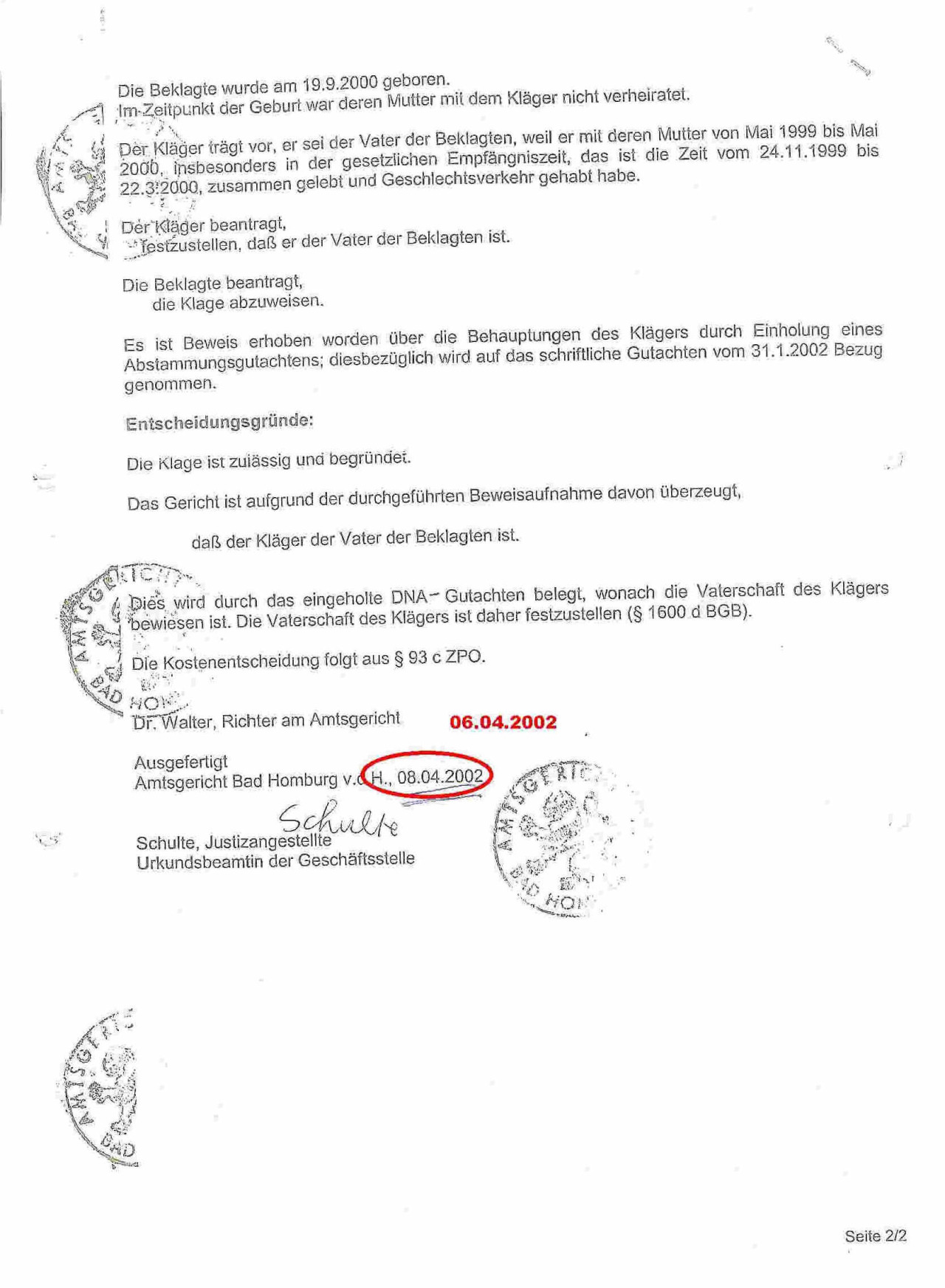 wird durch das eingeholte DNA-Gutachten belegt, wonach die Vaterschaft