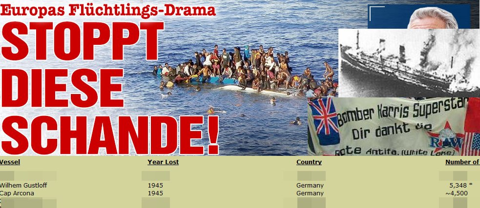 ?Boatpeople? ;o) *zwinker*http://www.bild.de/politik/ausland/fluechtling/die-fotos-der-schande-41377354.bild.htmlhttp://www.militaryhistoryonline.com/wwii/articles/wilhelmgustloff.aspx