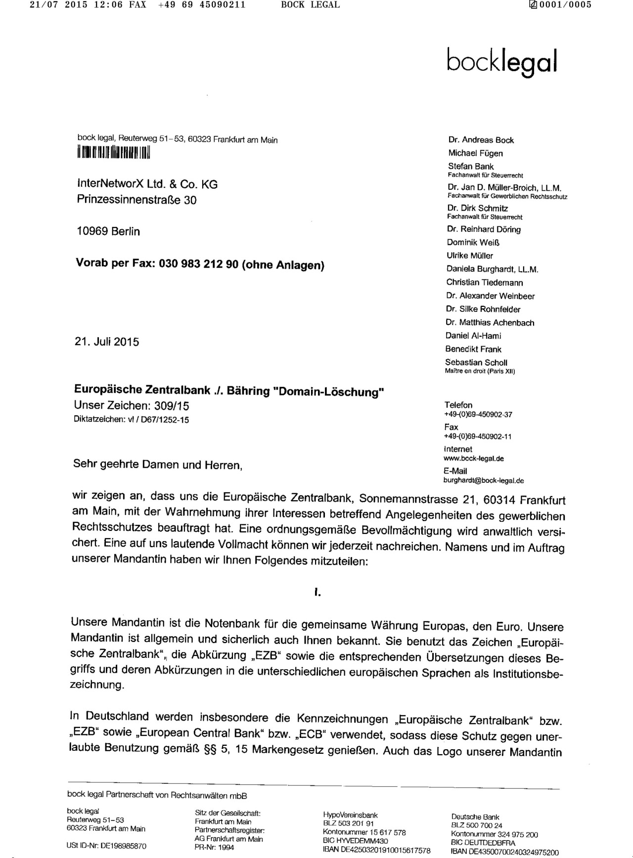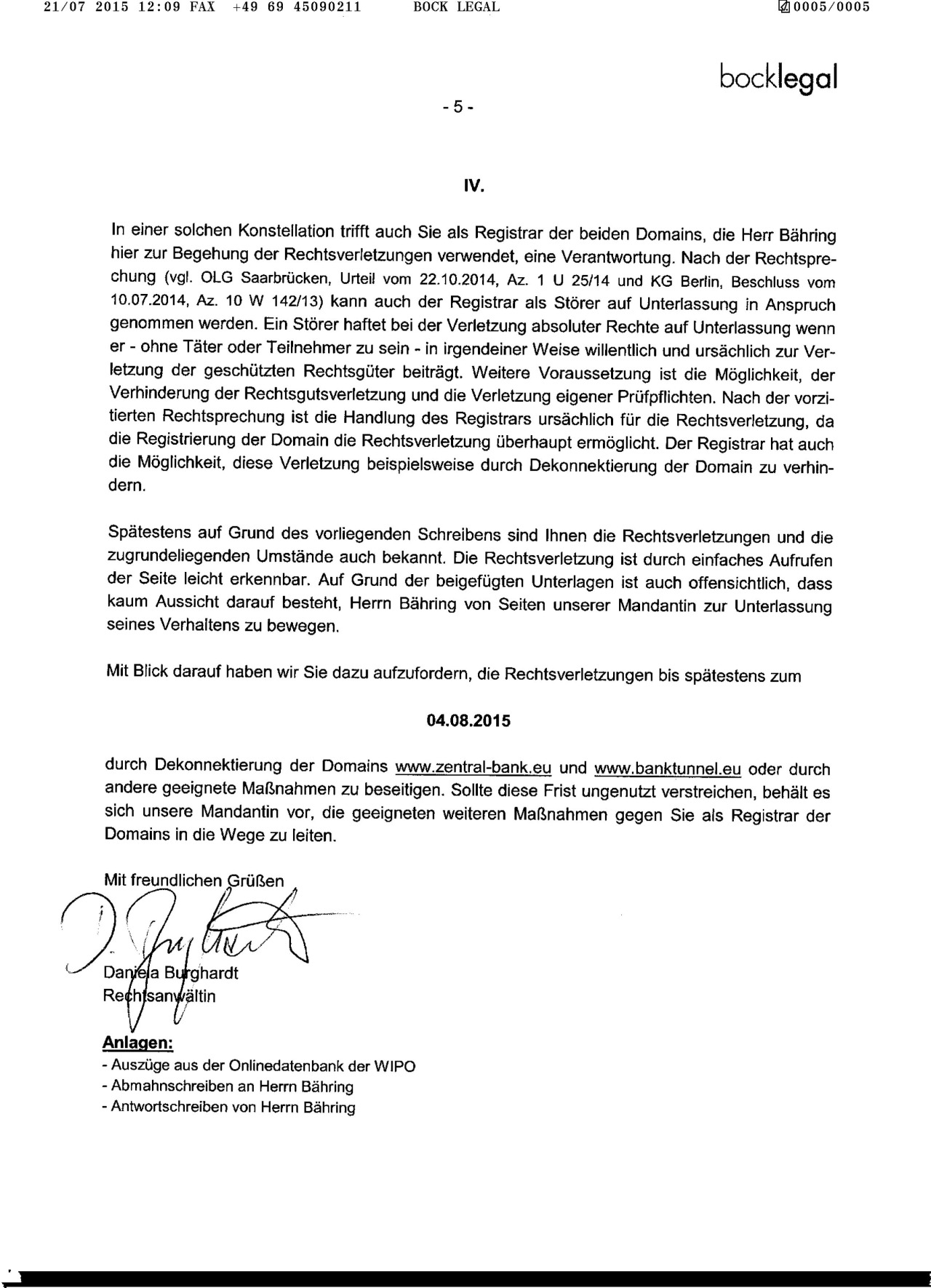 21/07 2015 12:09 FAX +49 09 45090211 BOCK LEGAL 0005/0005