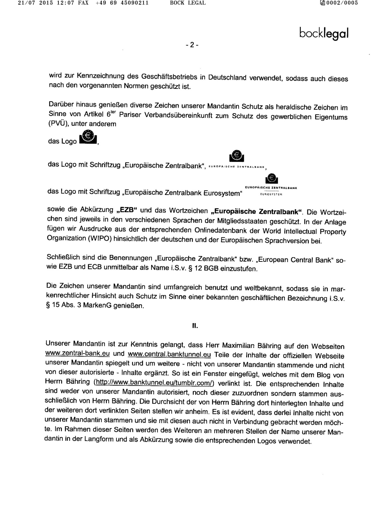 21/07 2015 12:07 FAX +49 09 45090211 BOCK LEGAL 0002/0005