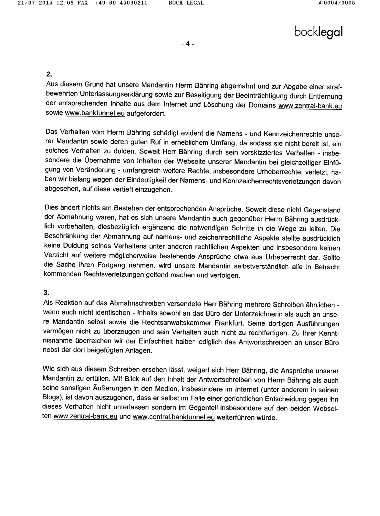 21/07 2015 12:08 FAX +49 09 45090211 BOCK LEGAL 0004/0005