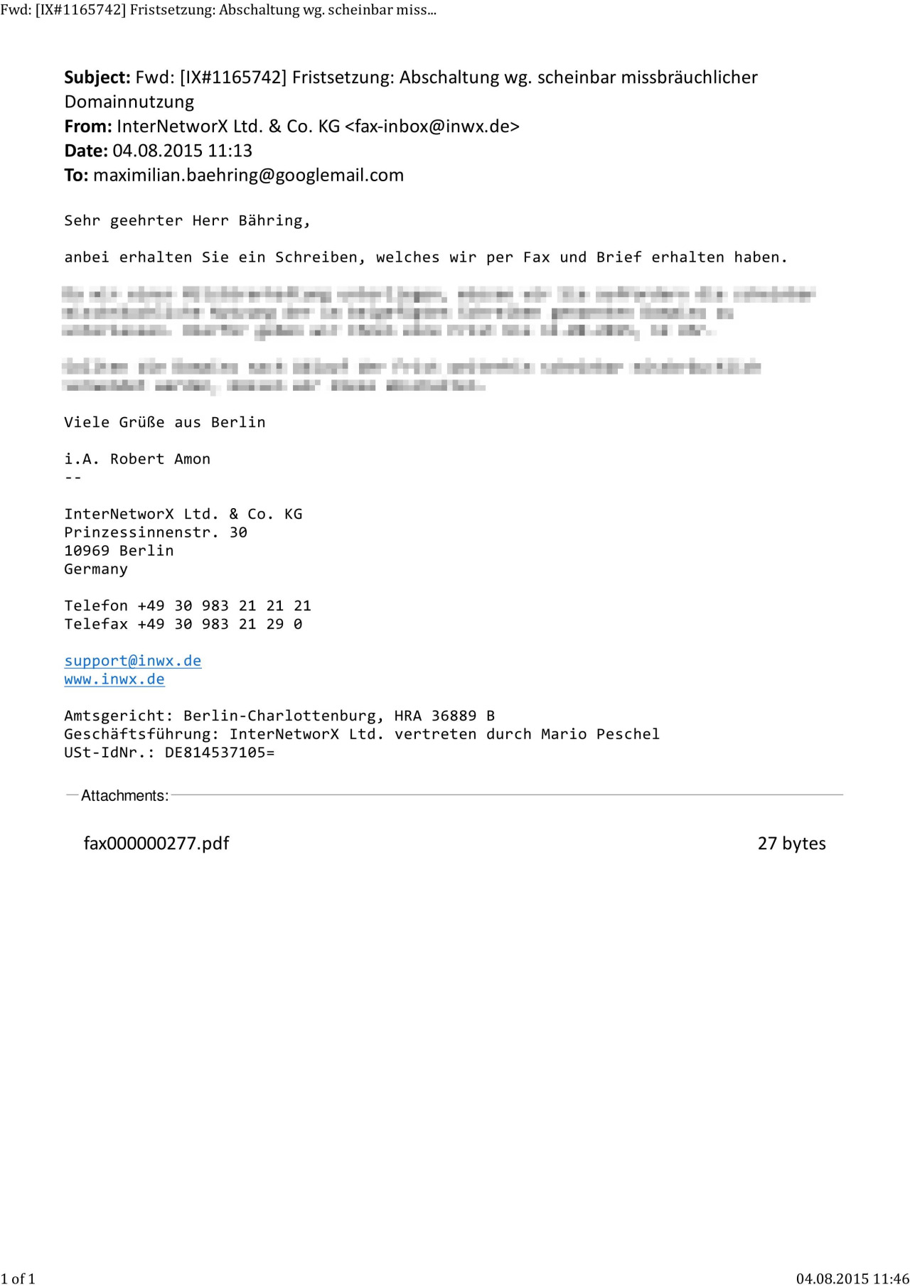 - Abmahnschreiben an Herrn Bähring