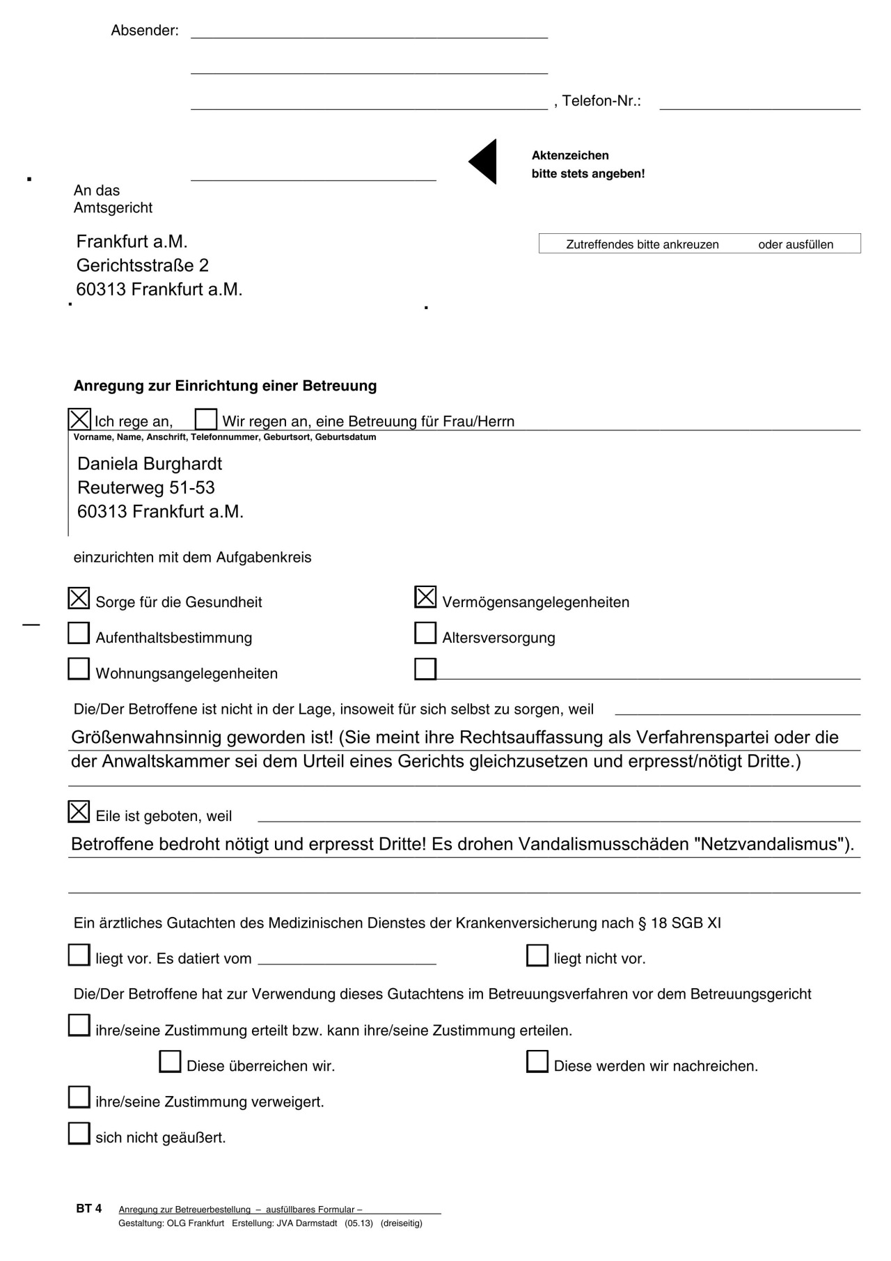 Als Reaktion auf das Abmahnschreiben versendete Herr Bähring mehrere Schreiben ähnlichen - wenn auch nicht identischen - Inhalts sowohl an das Büro der Unterzeichnerin als auch an unsere Mandantin selbst sowie die Rechtsanwaltskammer Frankfurt. Seine dortigen Ausführungen vermögen nicht zu überzeugen und sein Verhalten auch nicht zu rechtfertigen. Zu lhrer Kenntnisnahme überreichen wir der Einfachheit halber lediglich das Antwortschreiben an unser Büro nebst der dort beigefügten Anlagen.