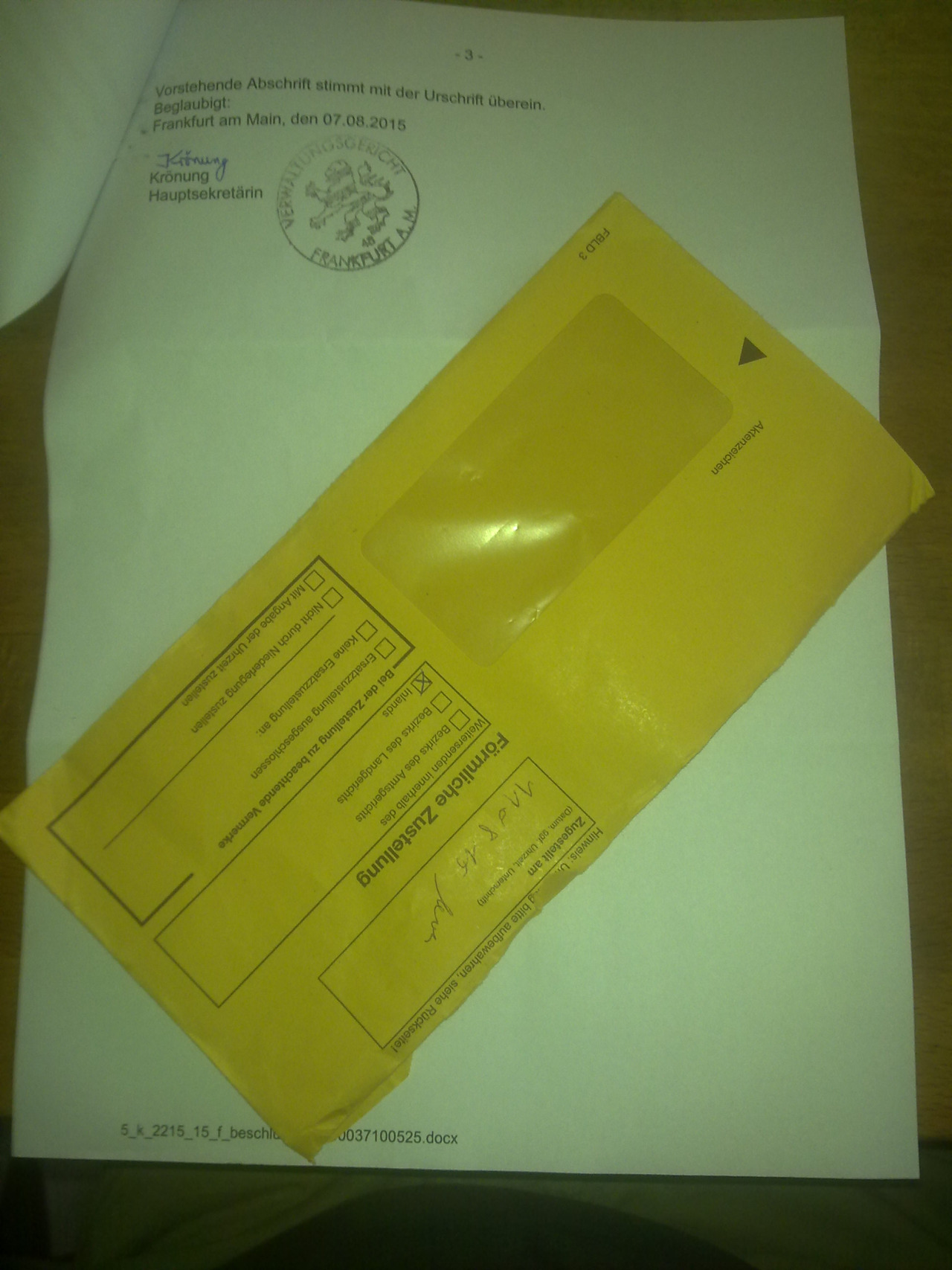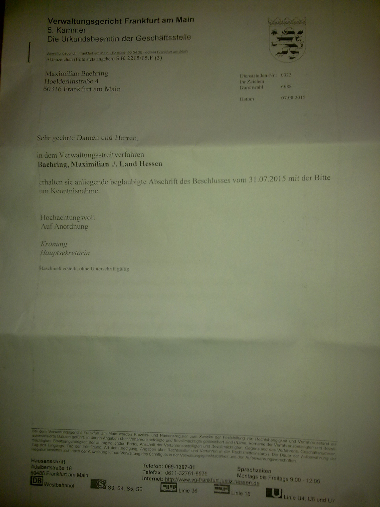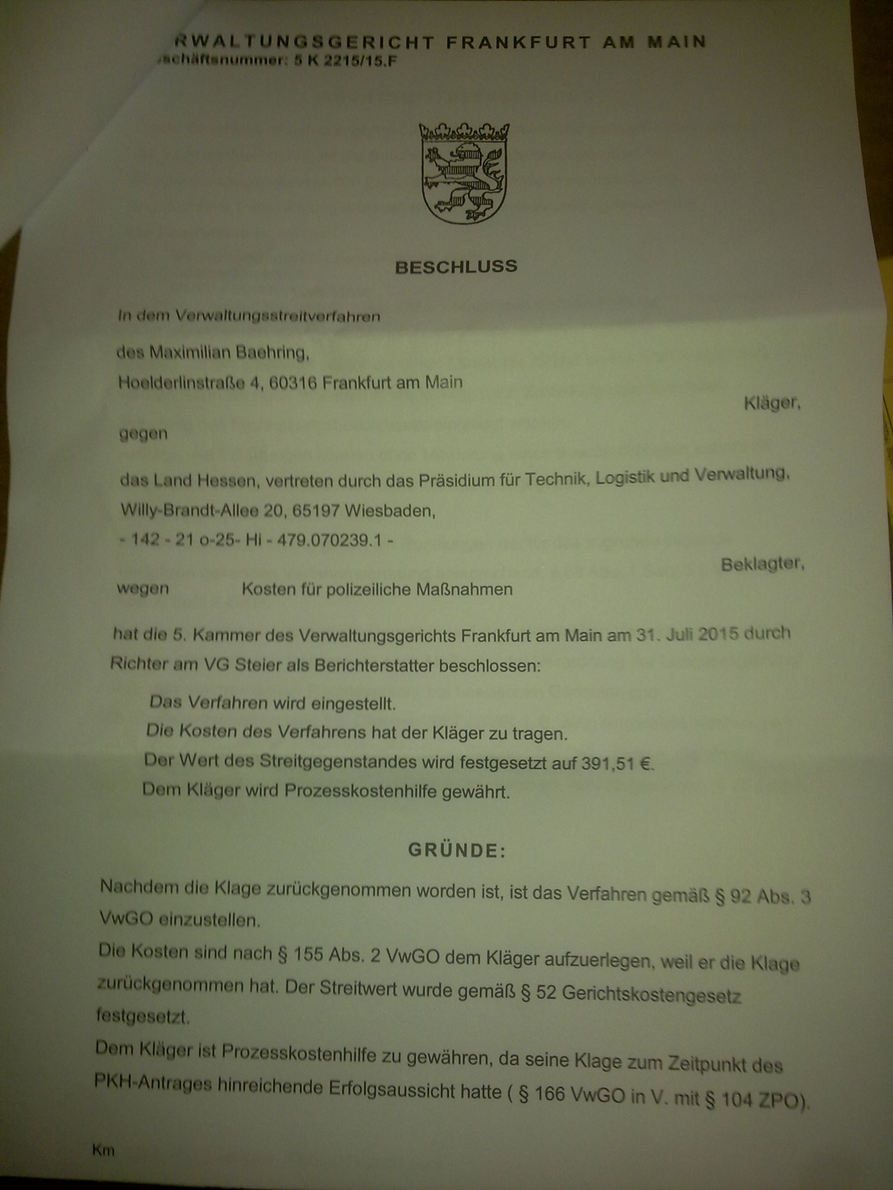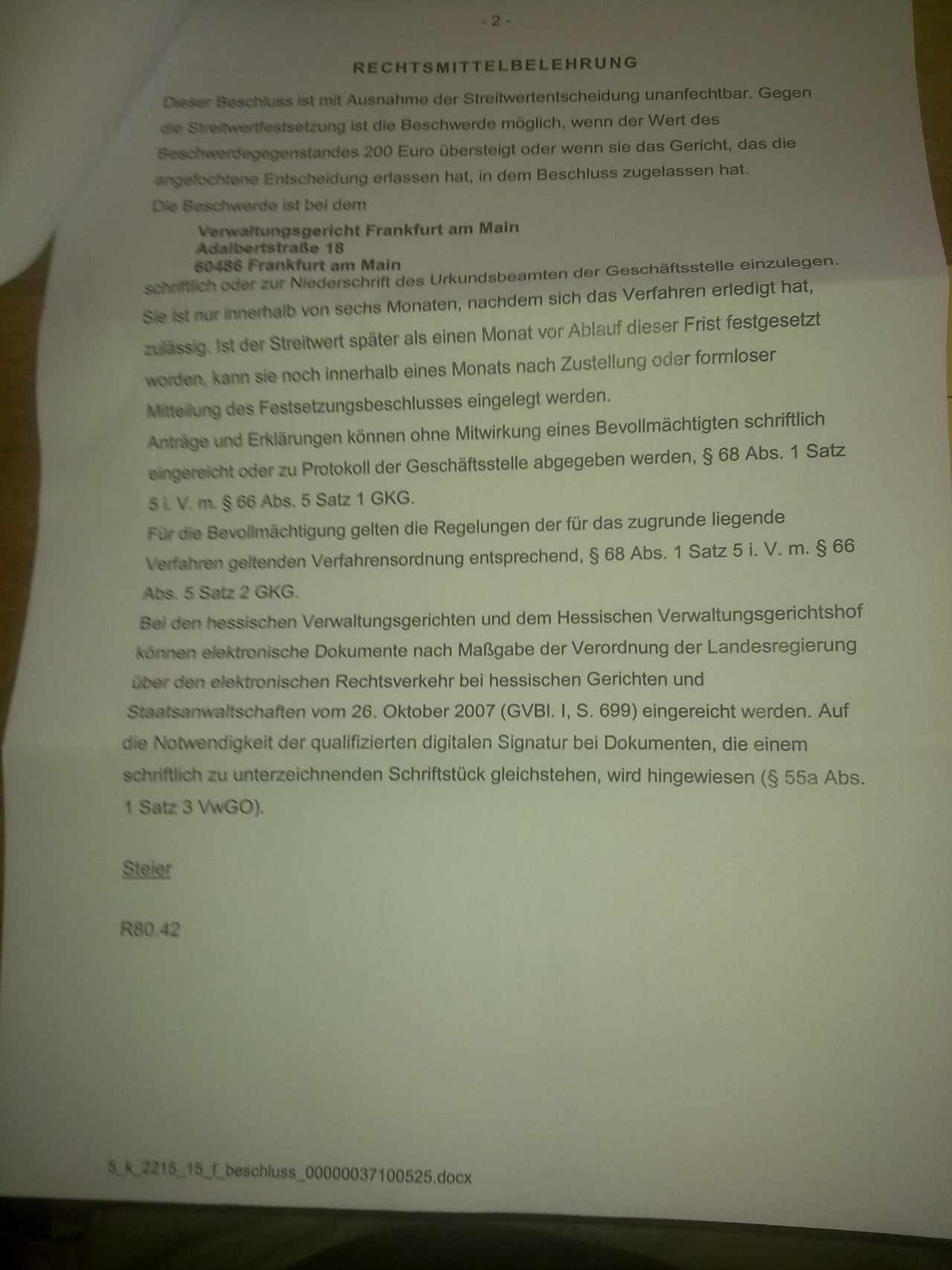 11.08.2015 12:08 Die vom VG FFM gewähren mir Prozesskostenhilfe um dann daraus Gerichtskostenvorscüße einzustreichen? [0] "201508111208-126419670638-0.jpg" [1] "201508111208-126419670638-1.jpg" [2] "201508111208-126419670638-2.jpg" [3] "201508111208-126419670638-3.jpg" |