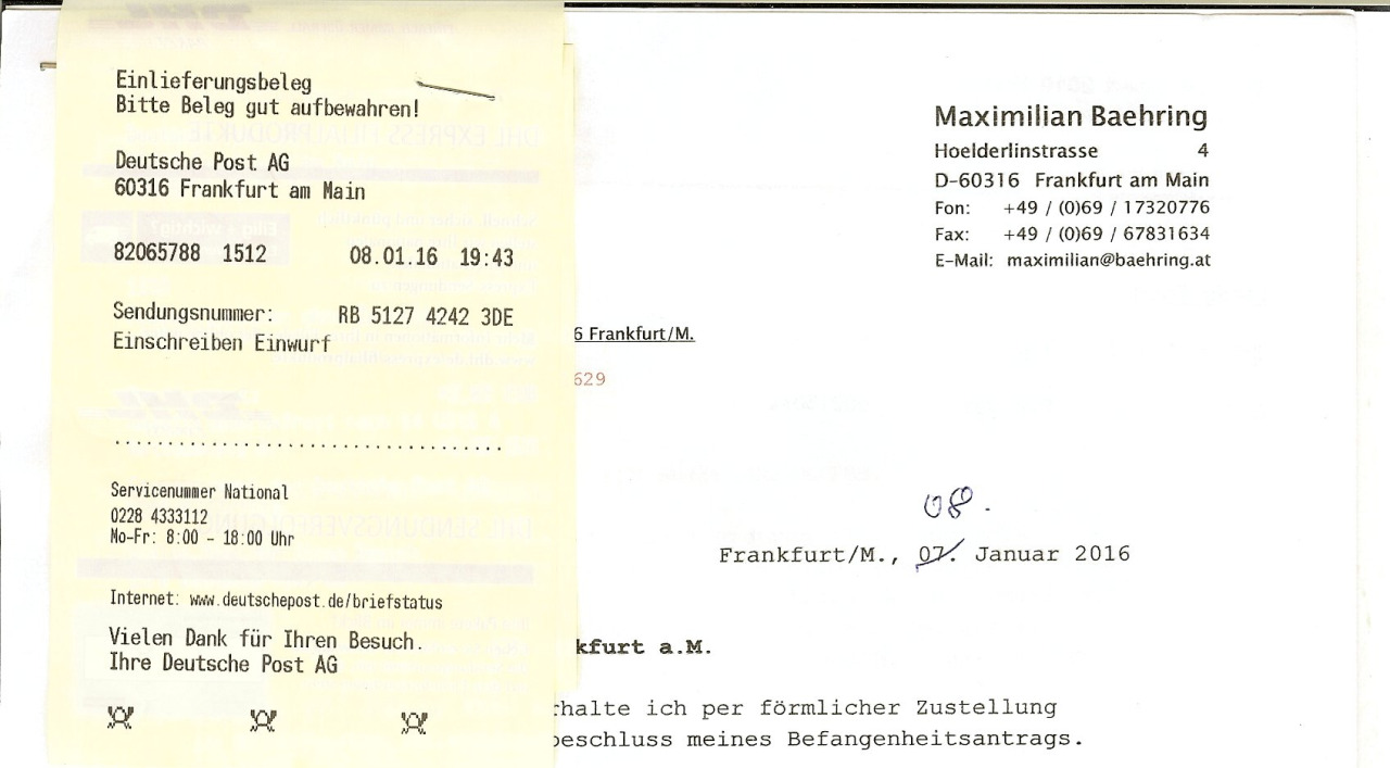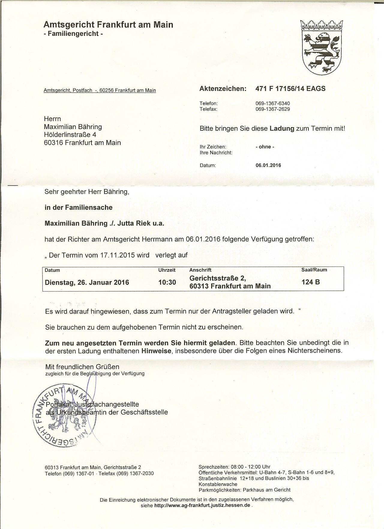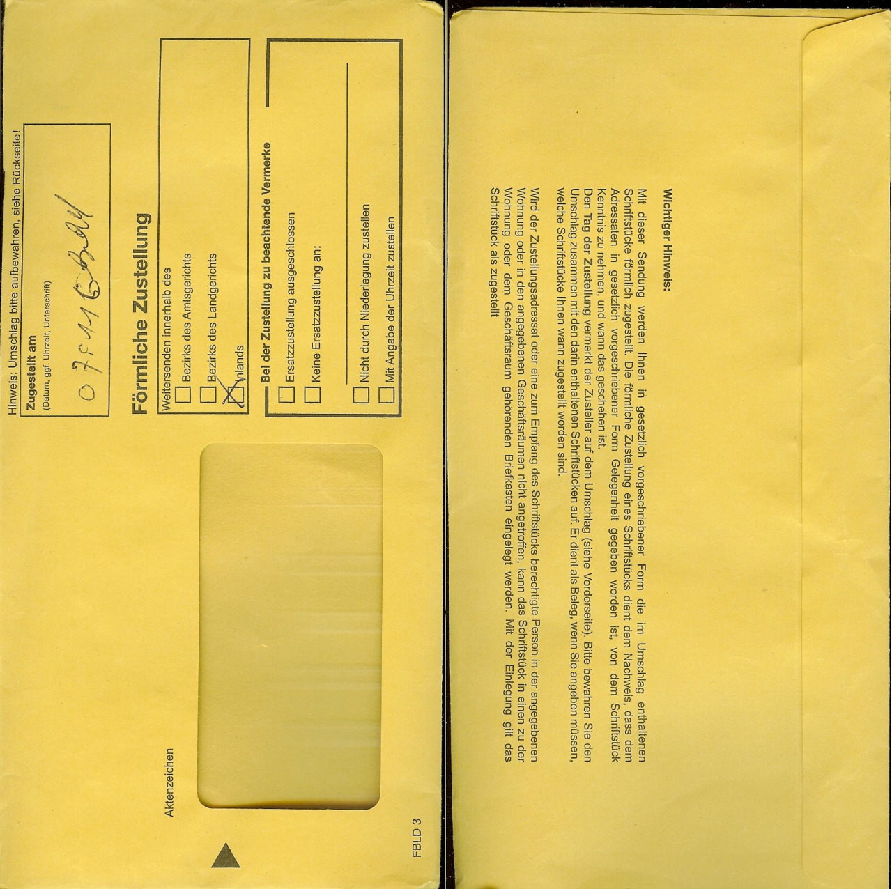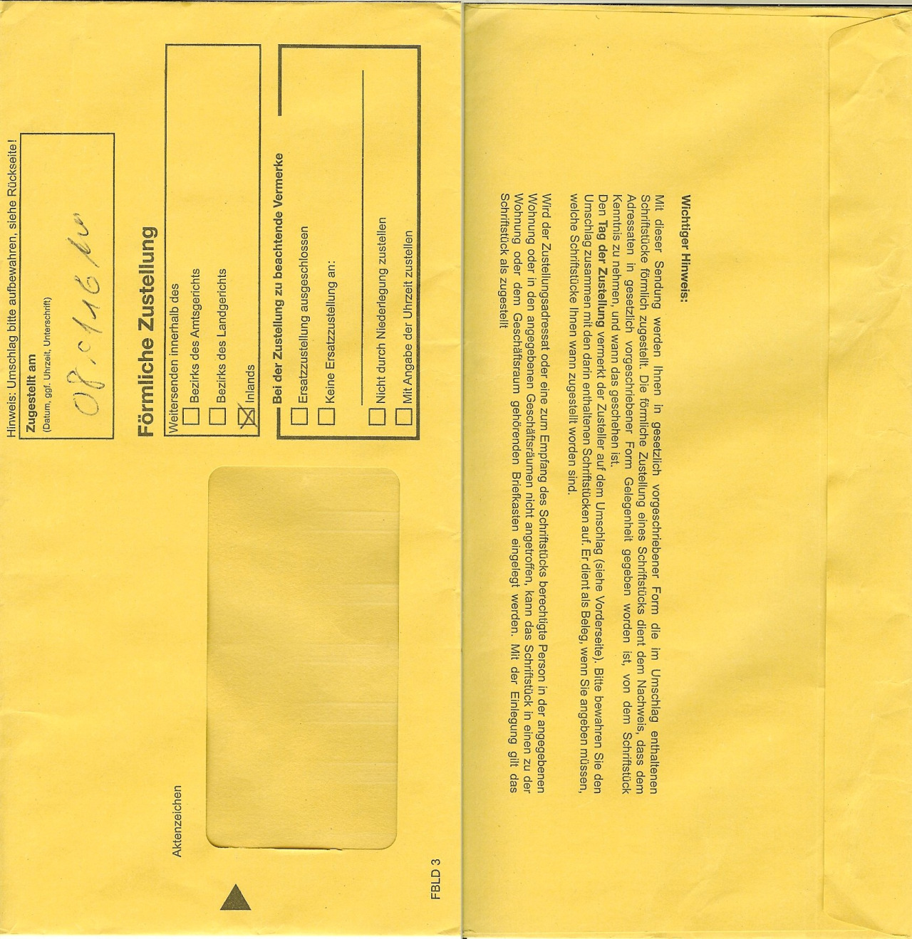 Soeben, 07. Januar 2016 erhalte ich per förmlicher Zustellung