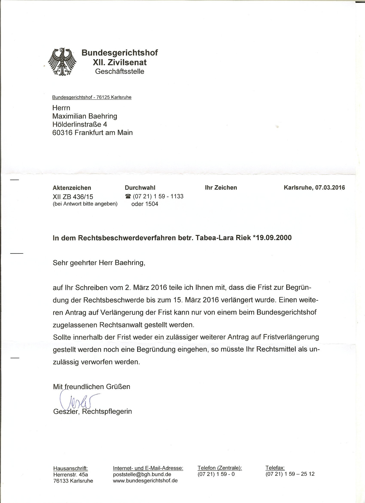 XII ZB 436/15 Bundesgerichtshof Karlsruhe