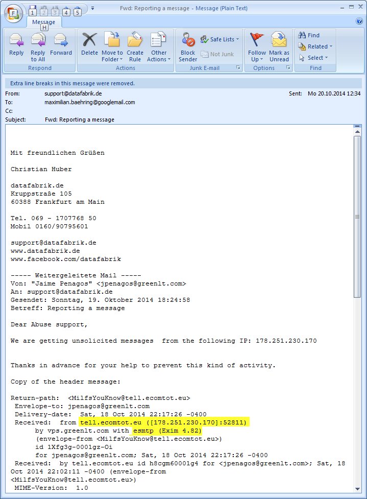 spamfalschmedlung hatten wir schonmal bei colorhost.