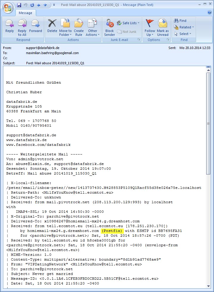 Bitte sorgen sie nun ihrerseits für Sperrung von ?admin@pivotrock.net?.