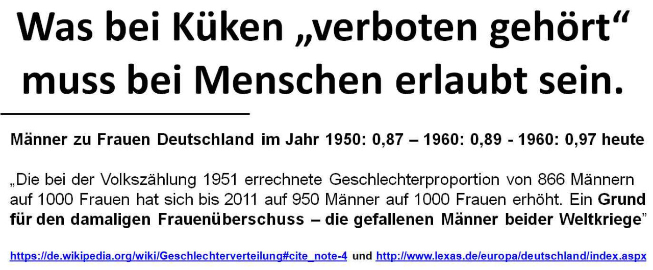 24.04.2016 08:36 Was bei Küken ?verboten gehört? muss bei Menschen erlaubt sein.