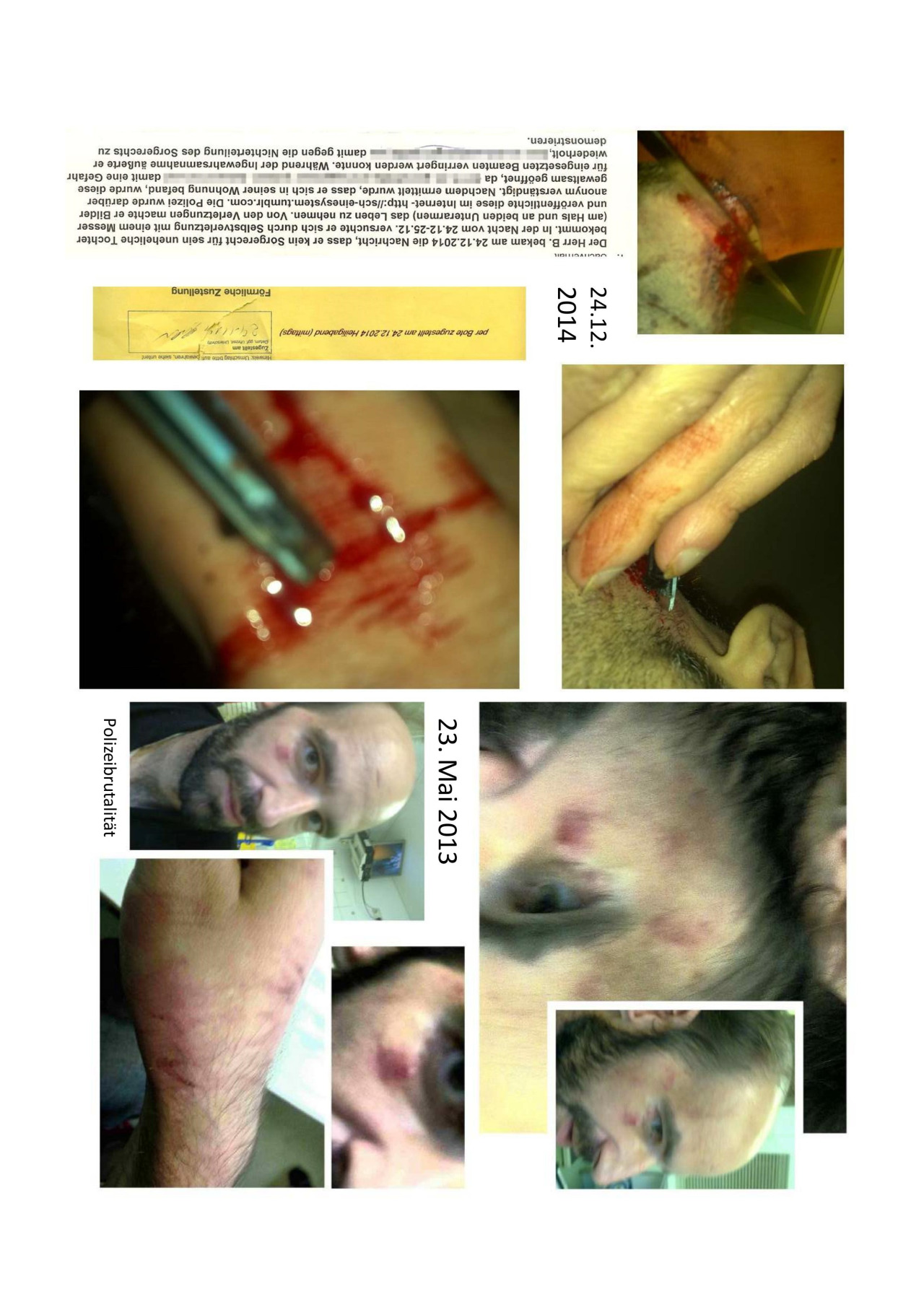teilzunehmen. Fotos meiner Verletzungen füge ich bei. Ich habe