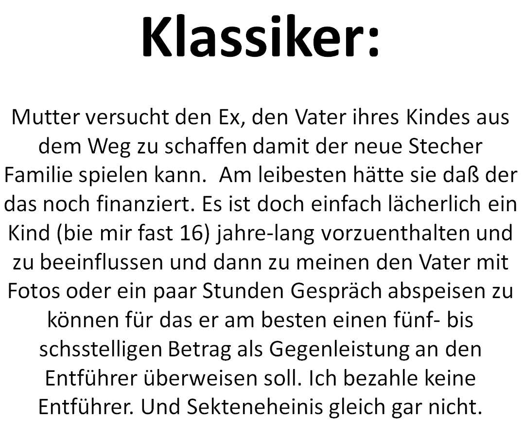 Klassiker:Mutter versucht den Ex, den Vater ihres Kindes aus dem Weg