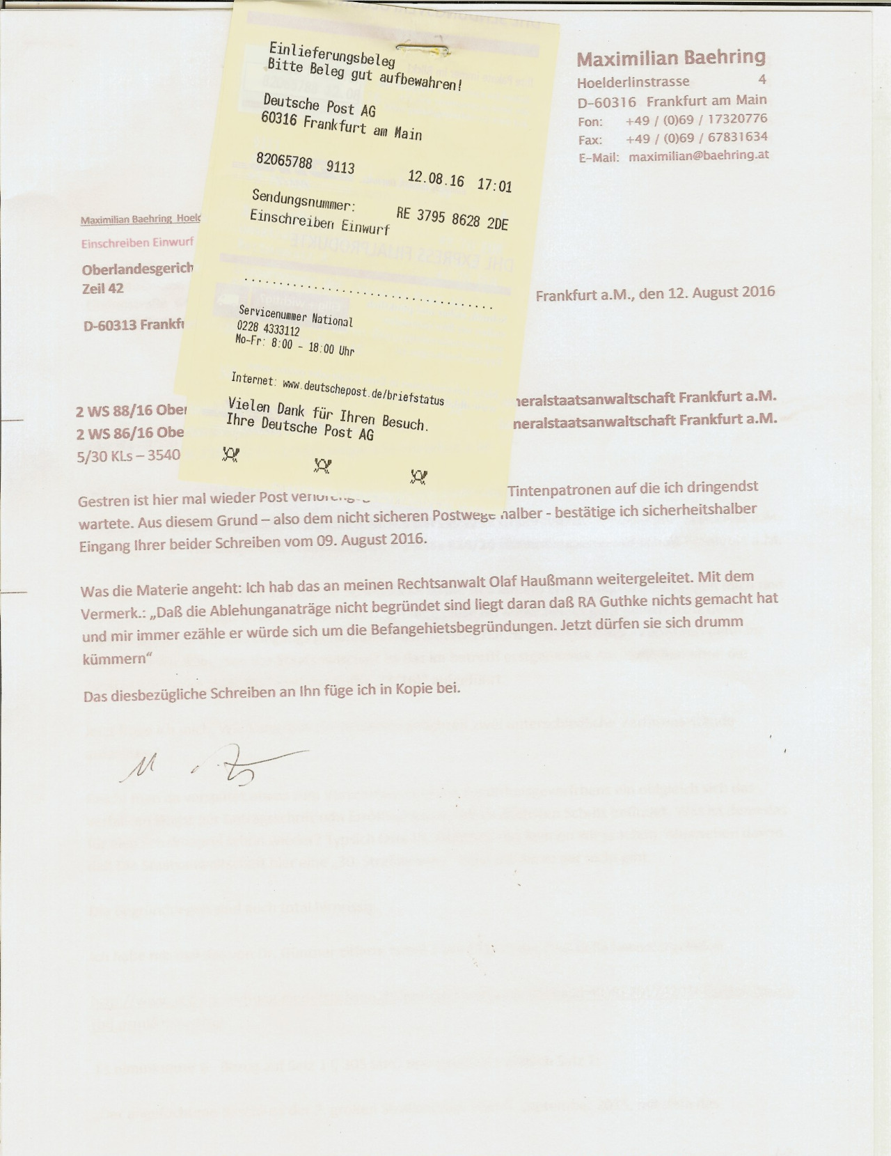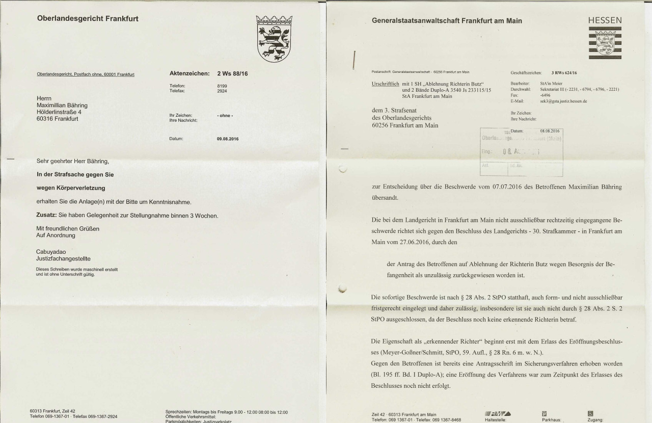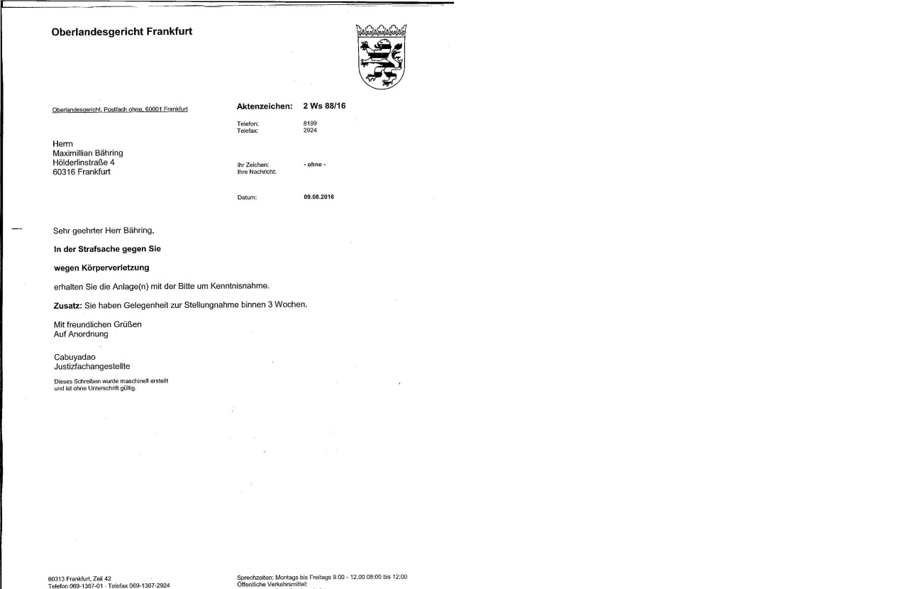 leitet mir das OLG Frankfurt a.M. heute Schriftsücke zu die sich auf ein