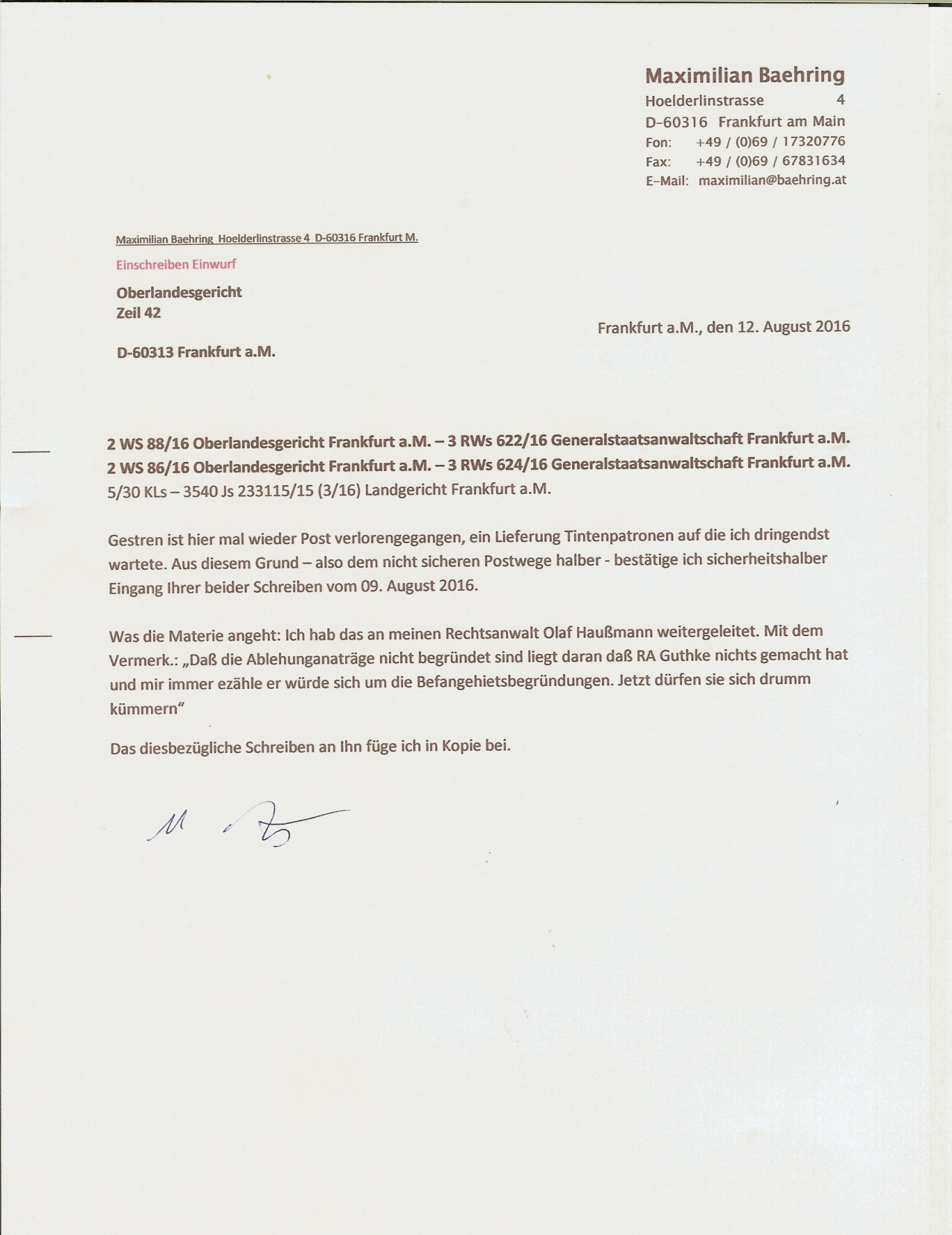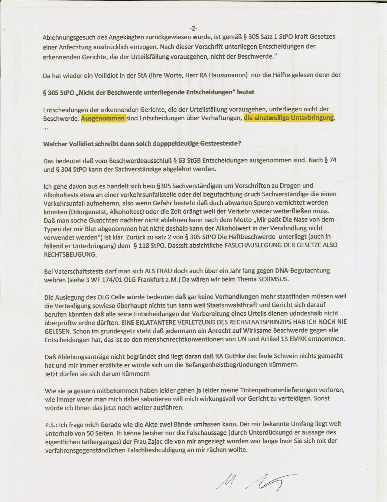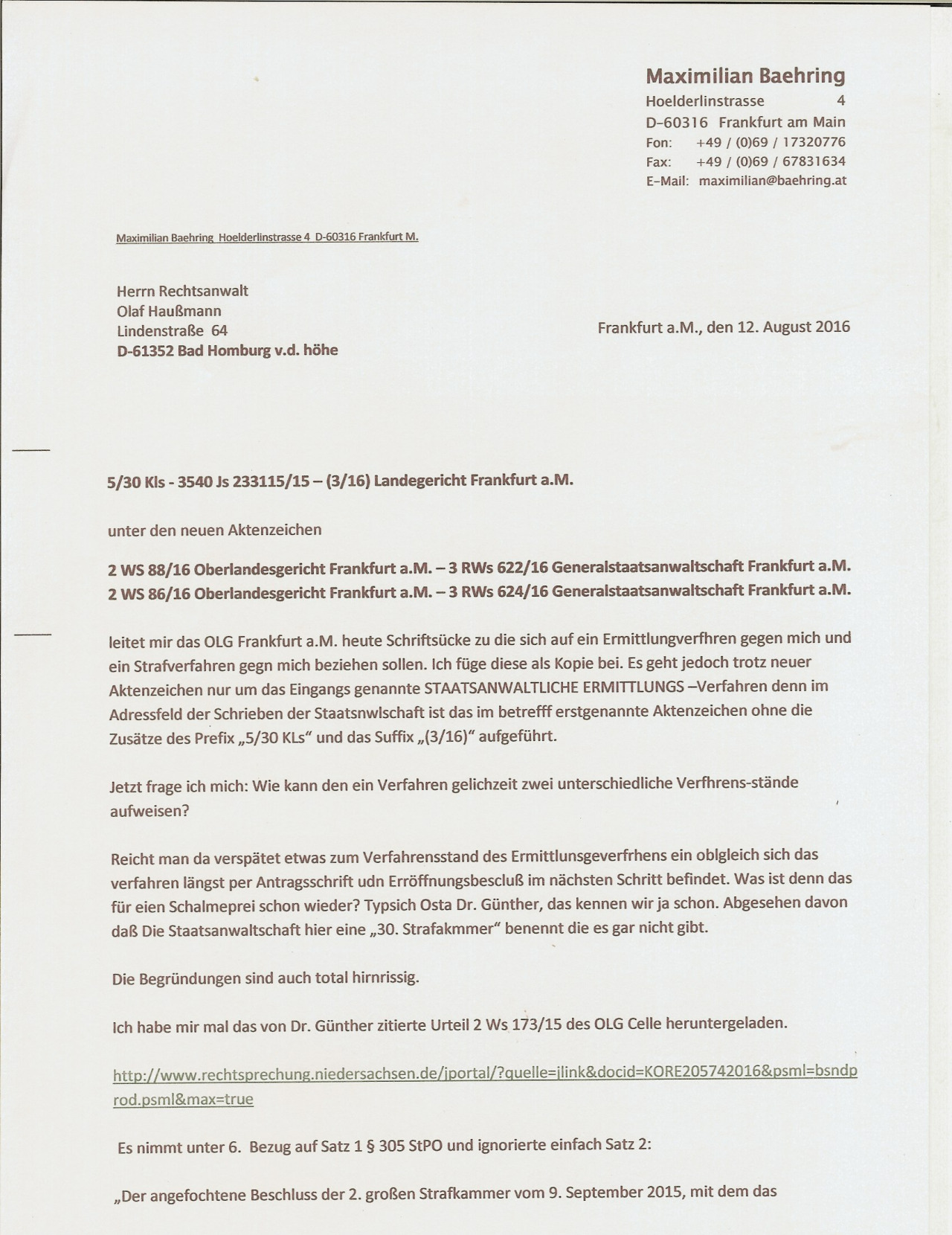 Da hat wieder ein Vollidiot in der StA (ihre Worte, Herr RA Haussmannn)