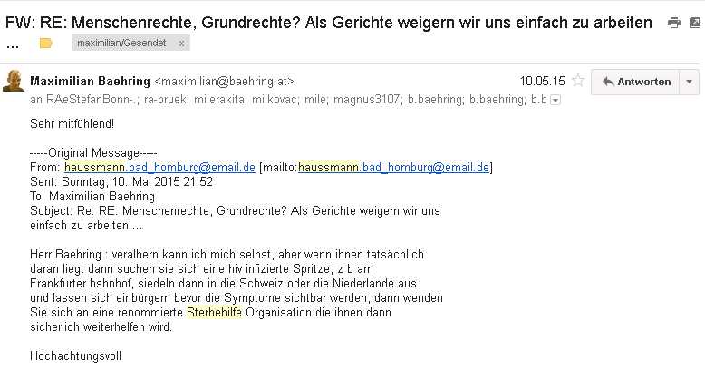 13.08.2016 01:50 http://sch-einesystem.tumblr.com/post/148841810248/ Es handelt sich um diesen RA Haussmann aus der ?suchen sie sich eine hiv infizierte Spritze, z b am Frankfurter bshnhof, ?, dann wenden Sie sich an eine renommierte Sterbehilfe Organisation die ihnen dann sicherlich weiterhelfen wird.? [0] "201608130150-148862084753-0.jpg" [1] "201608130150-148862084753-1.jpg" [2] "201608130150-148862084753-2.jpg" |