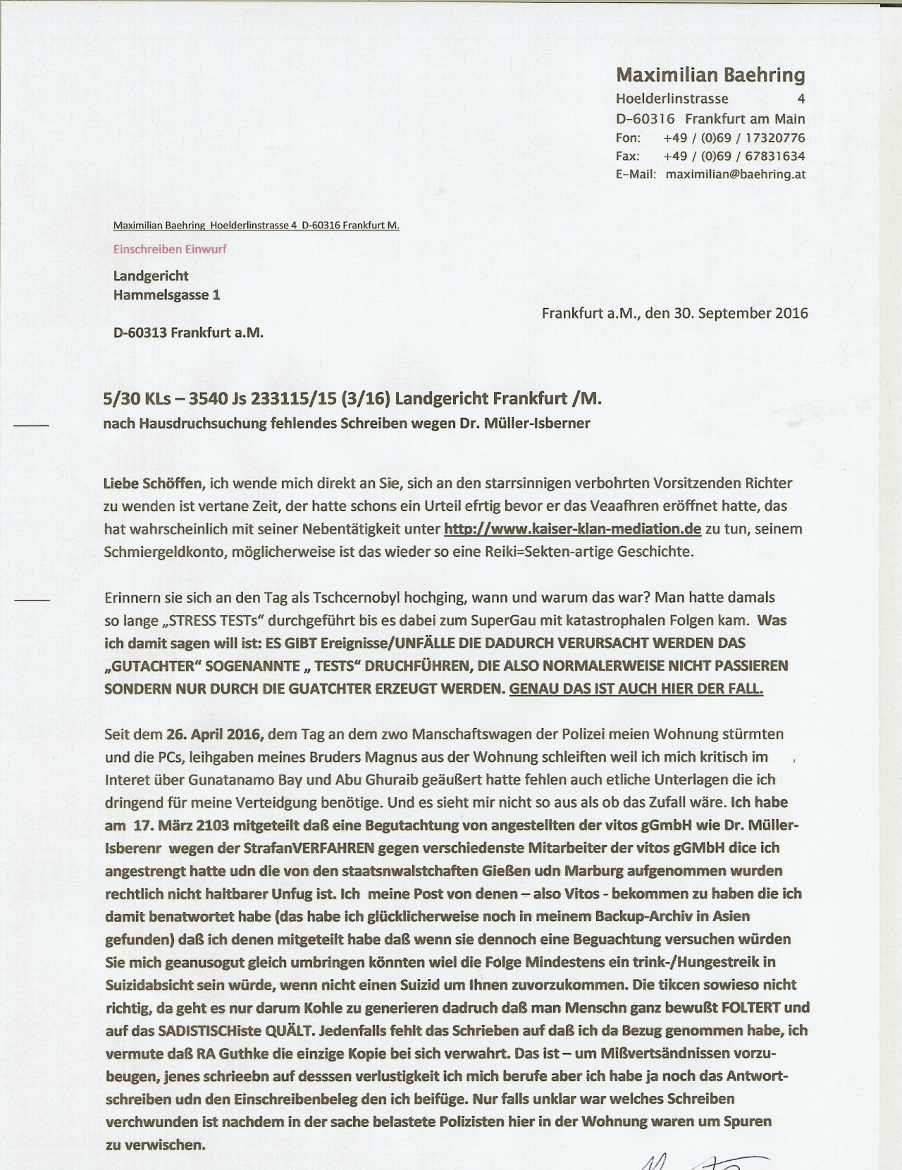 nach Hausdruchsuchung fehlendes Schreiben wegen Dr. Müller-Isberner