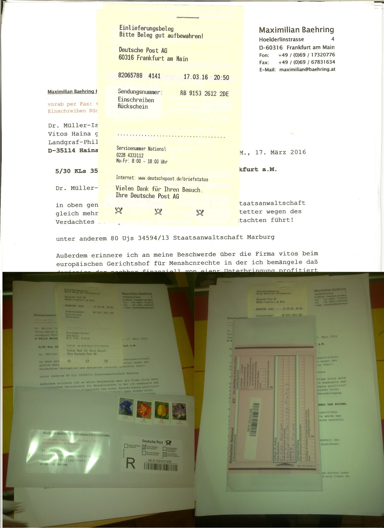 Antwort-schreiben udn den Einschreibenbeleg den ich beifüge. Nur falls