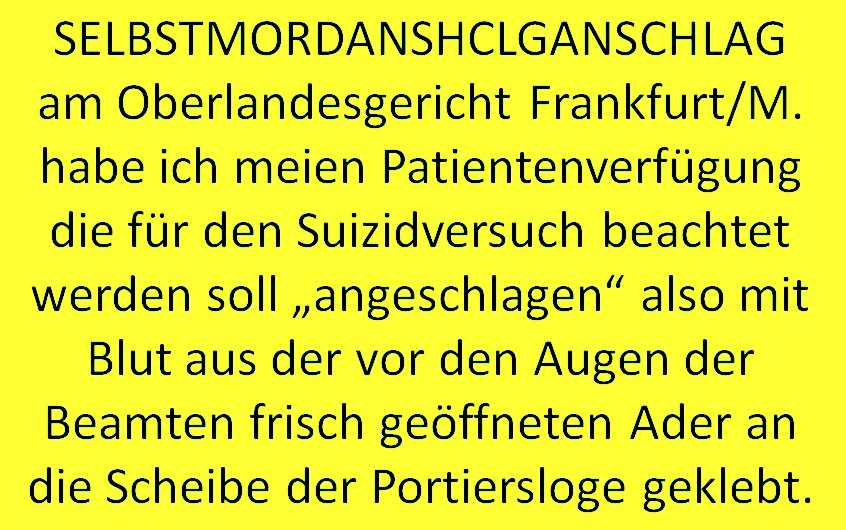 22.02.2017 08:35 Denkt daran. Meien wnalt verarshct mich nach strich udn Faden willpermeennt mehr geld. Der guatchter wikll ein für mich günstges zwotgutachten egegn geld und der Reichter betreibt lat Intrenet parallel ein undordntliches Gericht (ein shcidesgericht, er beieet nebenberuflich Mediation an) wo er Zahlungen entegegenimmt. Sowohl ichals auch der Anwlat haben mehrfach von geircht gefoderte eijemadn anderenals Anwalt zu ebstellen.Alles abgeelehnt. Slebsta ls meen Anwalt sich erdreistete zu schrieben für die Kohle die er vom Staat für dei flichtevrteidigung bekomme wolle er im Prinzip nichst für michtun udn das auch noch ans Gericht obegliche r walso ganz offen geldvon mir abpressen wollet daß ich nicht habe hat man das nicht zum Anlaß genommen jemand anderene zu bsetllen. Von der liste von zeigen die ich eienericht ahtet hat man nicht een ienziegn vorgelden evrhöhnt mich dann aber ich könne ja gerne jemadnen mitbringen wenn mir ejamdneinfile. Ich ahbe ganze Besiwstnaträge formuleirt udn ans gericht ebenso gesndet wei an den damaligen verteidger Guthke. Bis heuet ist deer ablehunganstrag eggen den guatchter der mich hat kräftigst foltern alssenudnd eshalb von mir angezeigt wrden warkein gehör gefunden. [0] "201702220835-157581233288-0.jpg" [1] "201702220835-157581233288-1.jpg" |