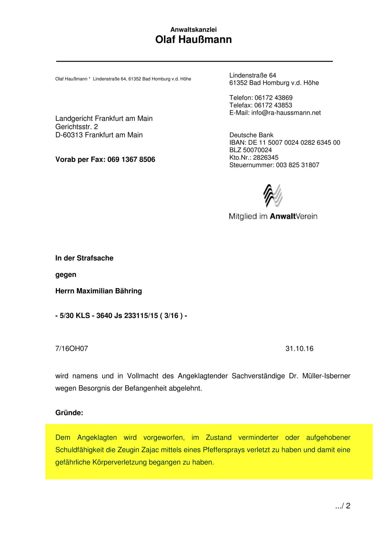 Sowihl ichals RA Haussmann hatten mehrfch gebeten diesen Auszuwechseln. Ich hatte zudem Akteneinsicht mittels desvonmir vorgeschlagenen Rechstanwlates Dr. Bensch beantragt, damit