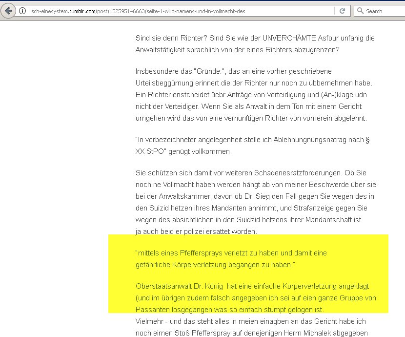 Daß meinanwalt nichts amcht aszeigt sich daran daß er nichtmal zu wissen scheint wessen ich überhaupt anegklagt bin. Er fabuliert von einem gnaz anderen Delikt (gefärhlicher Körperverletzung) als die Anklageschrft (einafche Körperverletung), egnau wie der arabische Zeuge der nach der Notwehrtat das Peffefrspary evrschidnen ließ daß ich damsl in der Taschegehabt hatte udn bei mir trage seit dei Polizei Bad homburg mir nicht half als ich anzieg esrattenw ollte wegene iens auf gehetzten Hundes neben eienr unzahl andrer Dinge die sice sich geweiert haben strafrechtlich zu evrfolgen, weshalb ich Hans-Christian Wieland, eien Polizisten aus Rheinalnd-Pfalz hinzuzog. Auch weil meien pätere stalkerin angab man würde irhe ebenfalls nciht helfeneggeneien gewltätigen Mann, eien geshcihte ie ich shcon mehrfahc gehört hatte, von der mutter meeinr Tochetr udn von iher Vrogängerin.