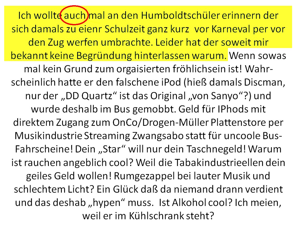 ich sie nichte rshcienen. mein Fräulein Tochter meint es sei unnötopg eien richtgen avter zu haben, aber wenn es darum geht Geld abzuzpcken (fürD rogen wie Zuagertten oder Alkool?) dann will sie doch eien erzeuger haben. Das habe die anwälte mit ihr so Seinstudiert um den zum bloßen Erzeuger dagrdierten Vater inden suizid zu hetzen. Damit sie dann amErbe evrdieenn können. jenen wanwälten die vercuht hben mcih entmündigenzu lassen nur um an Kohle zu kommen