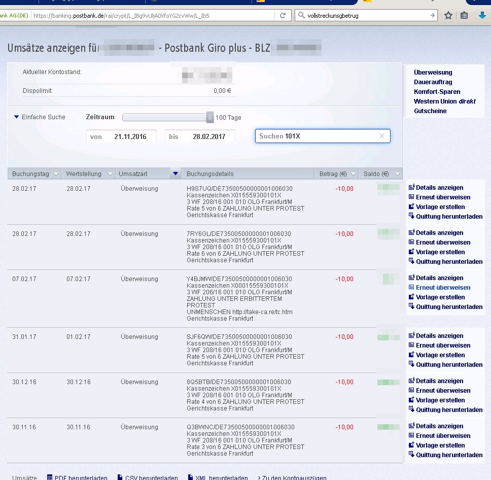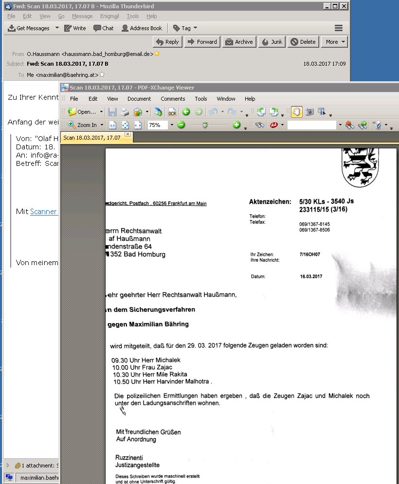19.03.2017 08:29 Ich frag mich halt langsam ob nicht einige wenige Staatsanwälte die wirklich ermitteln udn nicht politshc agieren (OSt Dr. König sagte am 15. März wenn ich das richig mitbekommenahbe etwas wie es gäbe mehr als 5.000 in Wortne fünftausend Strafanzeigen meienr politischen Gegner gegen mich - soviel zur reichweite des Blogs - und Anziegne von mir gegen korrupte Beamte, insebsodnere Polizisten, Staatsnwälte und Richter, Klageerzingungsverfahren, Petitionen an landtage, Bundestag, Eu-parlamanet, Anregungen von Disziplinarerfahren udn Dienstaufsichstbeschwerden )