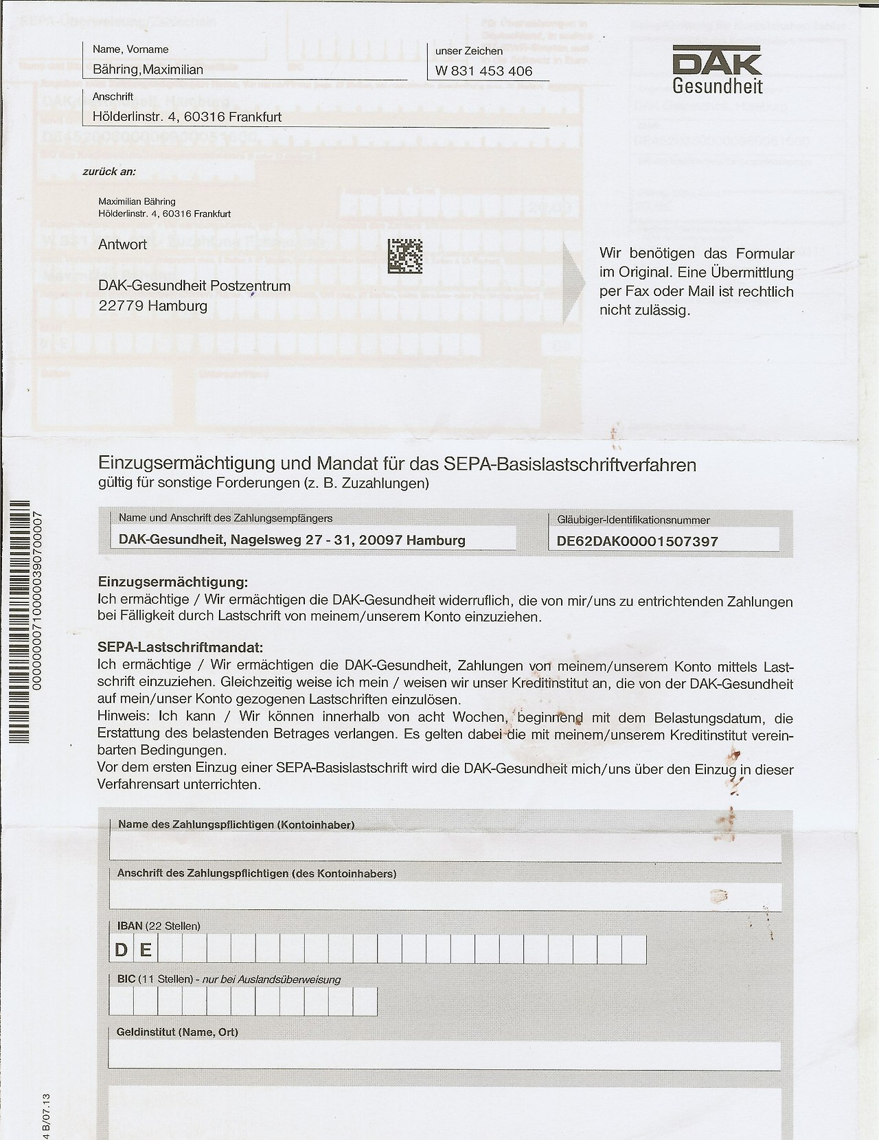 dienst eisnatzen daß die kranken-kasse der alten Dame wenigsten