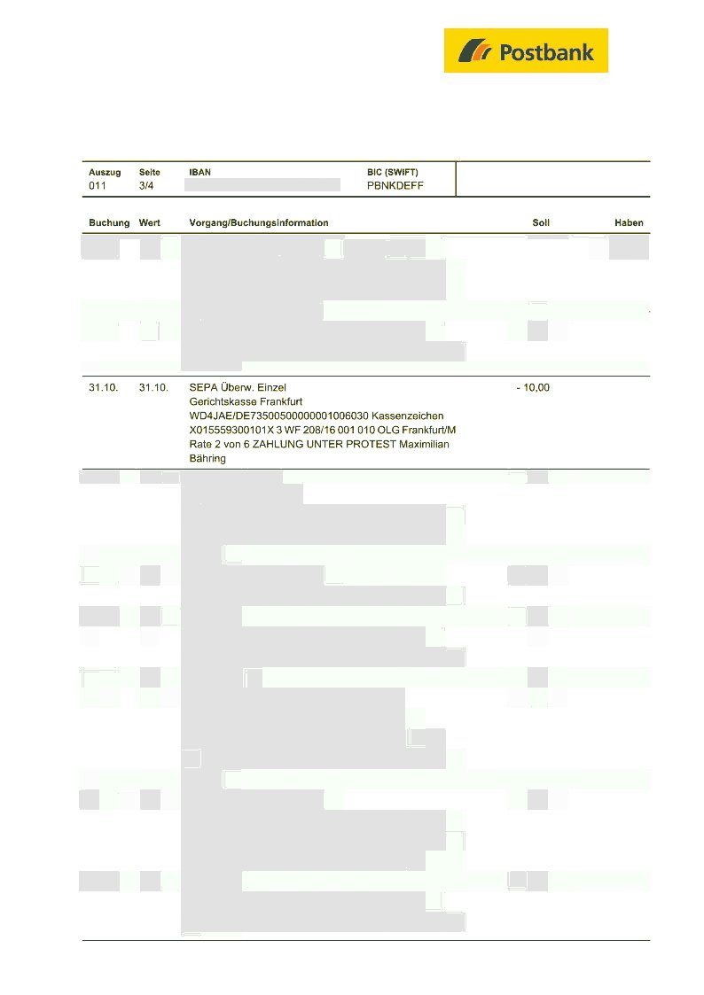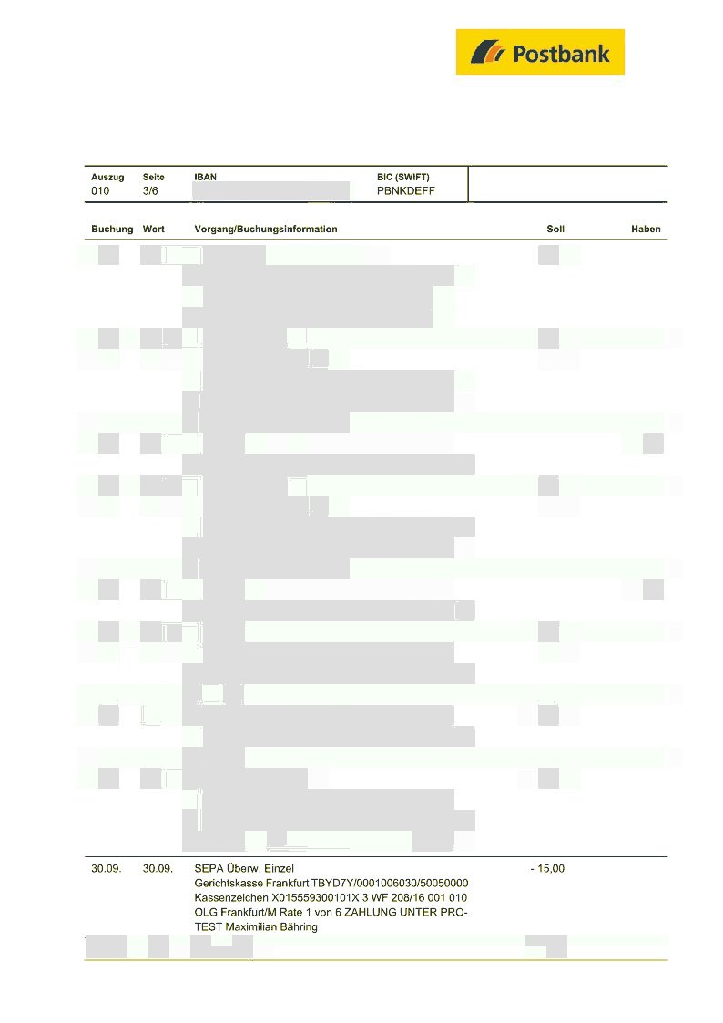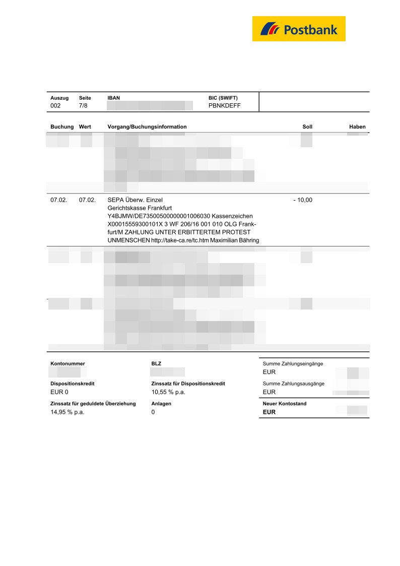 Den Restbetrag von Euro 15,64 habe ich auf ihr Kanzleikonto überwiesen. Ich hätte das Geld ja gerne an meienLEtren slebst überweiden aber mir fehlt eine akteulle Konto-nummer. Als Absender auf demBref stand auch nur Ma, so daß ich auchnicht post-alisch antworten wollte. Das versendenvon gedl auf dem