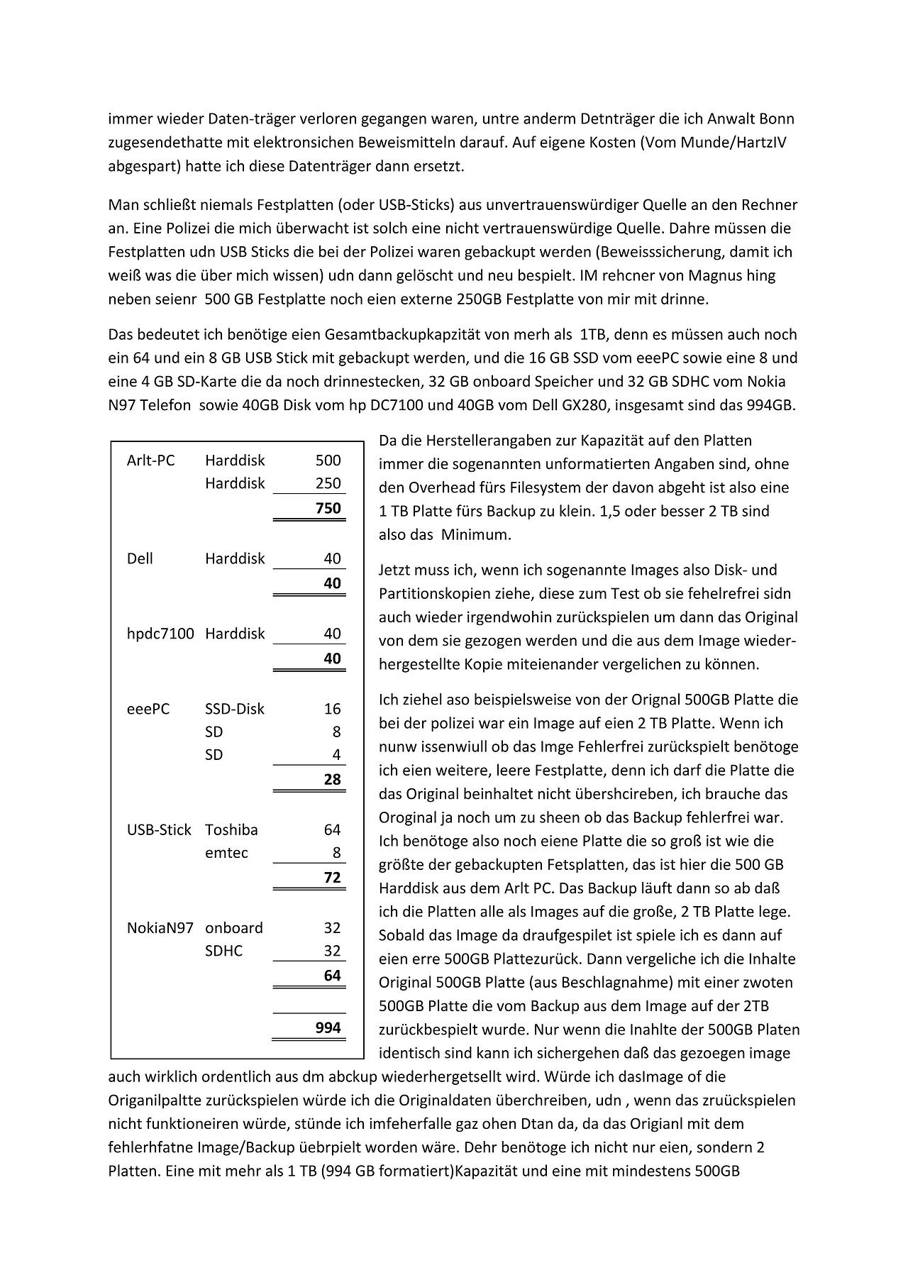 Ich selbst habe aus der Beschlagnahme lediglich den alten PC hpdc7100den mir die Firma zur Verfügungstellte zurückbehalten, ebsonm das als Erstaz für das beim Polizei-einsatz am 23. Mai 2013 kaputtegagnge Nokia N97 beschaffte Ersatzgrät, das Smart-phone, das mein Bruder mir geliehen hat, damit ich Beweisfotos machen kann.