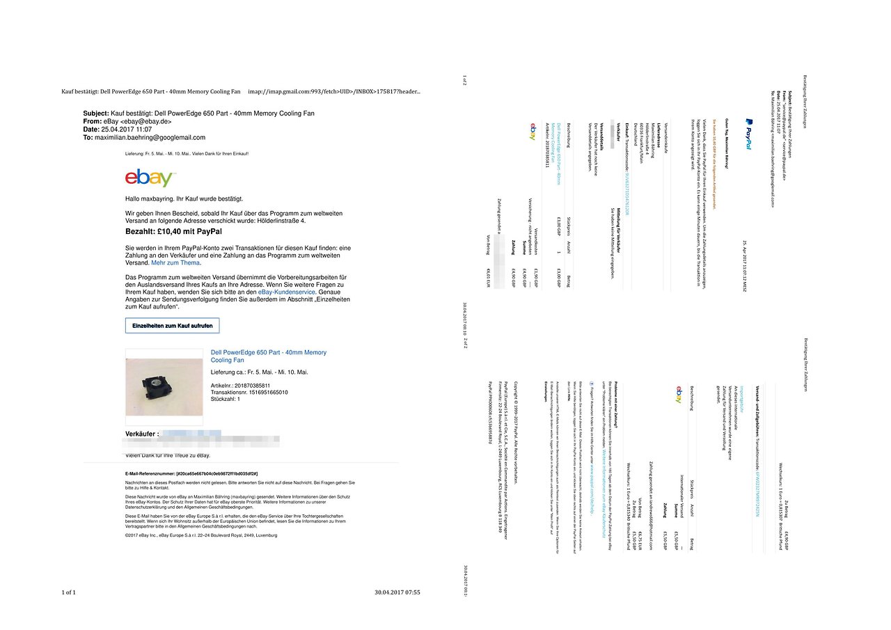 Euro (500GB Platte), sowie ebay und Paypal Bestätigungen für die 10,40