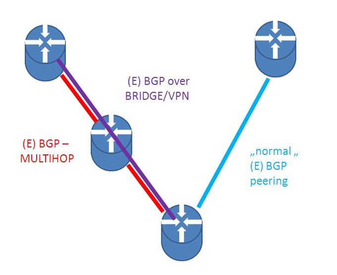imz zuge dieser suche versuche ich nun eien hop einzusparen zwichen route-srver und bgp router indemich die beide bridge satt route. das geht in dem falle mal weil das für jende route server ein link /hop innerhalb des jeweligen rechnezterums des jeweiligen upstremas ist der soweiso slebst kaum störungsanfällig ist udn eben keien multihopandbindung wie am ruter selbst, etwa ein vdsl oder umts wo bgp für das auffangen von störungen aucf wackeligenleitungen zuständig ist, wie etwa den 6 ms zwichen bad homburg und frankfurt auf dem schönwetterfunk luftweg oder den 10-20 ms per dsl. daher experimntiere ich gerade mit bridgung über tapv4 in sitv6inv4 tunneln, mit bonding und vechiendenen proxy arp evrfhren.