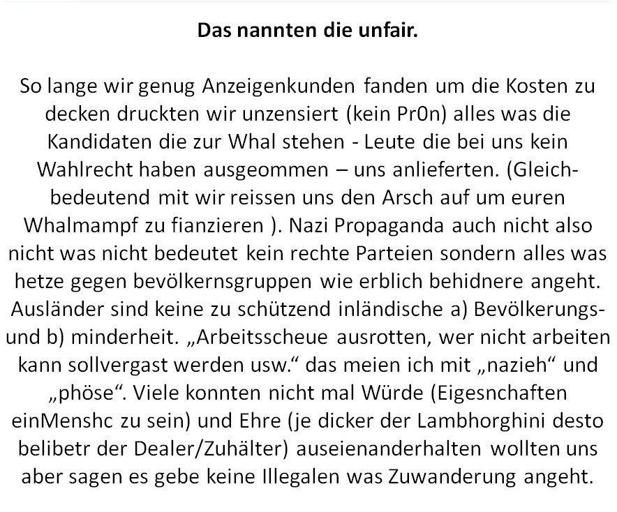 14.08.2017 04:21 Typsich MUTTI: Fresst nicht so viel Schoko-Riegel ausländsicher Groß-konzerne (wächst in DE eiegentlcih Kakao) sodnern esst lieber zu den Mahlzeiten zu Hause was vernünftiges (auch wenn Mutti nicht kochen kann). ? VÄTER BETRÜGENDE FOTZEN SOLLEN WEITRHIN MEHR KOHLE VOM STAAT BEKOMMEN SO LANGE SIE IDENTITÄTEN DER KIDNER VERSCHLEIERN NACHHER SAGEN SIE DANN DE VATER IST GAR KEIN MILLIARDÄR UND DER STAAT BLEIBT AUF DEN KOSTEN (ZUVIEL EBZAHTE VORSCHÜSSE) SITZEN. ? ? ? Wow, 1945 war Kriegsende das ist jetzt 72 Jahre her das ebduete ein Das spricht dochalles wieder sehr für die deutsche Justiz und Polizei. Daß es da im,mer noch Tatorte gibt die anscheinend [0] "201708140421-164179461993-0.jpg" [1] "201708140421-164179461993-1.jpg" [2] "201708140421-164179461993-2.jpg" [3] "201708140421-164179461993-3.jpg" [4] "201708140421-164179461993-4.jpg" [5] "201708140421-164179461993-5.jpg" [6] "201708140421-164179461993-6.jpg" [7] "201708140421-164179461993-7.jpg" [8] "201708140421-164179461993-8.jpg" [9] "201708140421-164179461993-9.jpg" |
