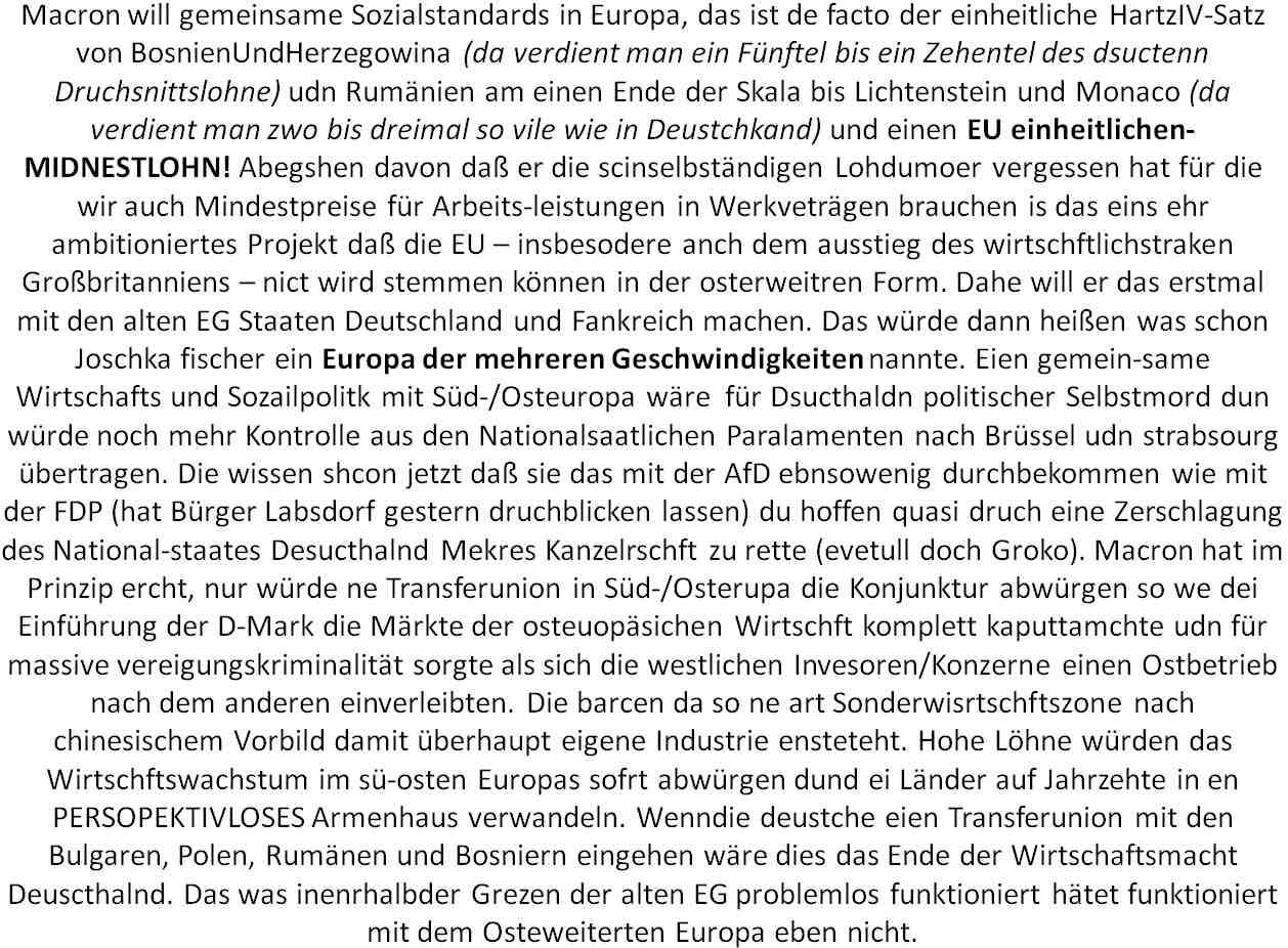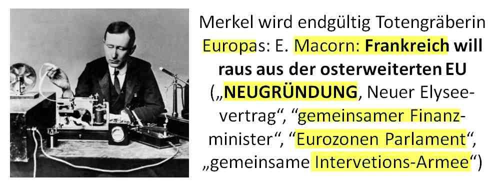 27.09.2017 08:19 Merkel wird endgültig Totengräberin Europas: E. Macorn: Frankreich will raus aus der osterweiterten EU (?Nuegründung, Neuer Elysee-vertrag?, ?gemeinsamer Finanz-minister?, ?Eurozonen Parlament?, ?gemeinsame Intervetions-Armee?) http://www.faz.net/aktuell/politik/ausland/macron-schlaegt-deutschland-neue-partnerschaft-vor-15219182.html http://www.zeit.de/politik/ausland/2017-09/zukunft-eu-emmanuel-macron-rede http://www.faz.net/aktuell/wirtschaft/macrons-europa-rede-albtraum-fuer-paris-15219368.html [0] "201709270819-165789772583-0.jpg" [1] "201709270819-165789772583-1.jpg" [2] "201709270819-165789772583-2.jpg" [3] "201709270819-165789772583-3.jpg" [4] "201709270819-165789772583-4.jpg" [5] "201709270819-165789772583-5.jpg" [6] "201709270819-165789772583-6.jpg" [7] "201709270819-165789772583-7.jpg" [8] "201709270819-165789772583-8.jpg" [9] "201709270819-165789772583-9.jpg" |