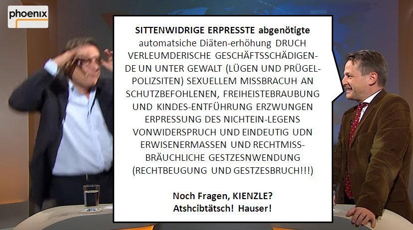 SITTENWIDRIGE ERPRESSTE abgenötigte automatsiche Diäten-erhöhung DRUCH VERLEUMDERISCHE GESCHÄFTSSCHÄDIGEN-DE UN UNTER GEWALT (LÜGEN UND PRÜGEL-POLIZSITEN) SEXUELLEM MISSBRACUH AN SCHUTZBEFOHLENEN, FREIHEISTEBRAUBUNG UND KINDES-ENTFÜHRUNG ERZWUNGEN ERPRESSUNG DES NICHTEIN-LEGENS VONWIDERSPRUCH UND EINDEUTIG UDN ERWISENERMASSEN UND RECHTMISS-BRÄUCHLICHE GESTZESNWENDUNG (RECHTBEUGUNG UND GESTZESBRUCH!!!)Noch Fragen, KIENZLE?Atshcibtätsch! Hauser!