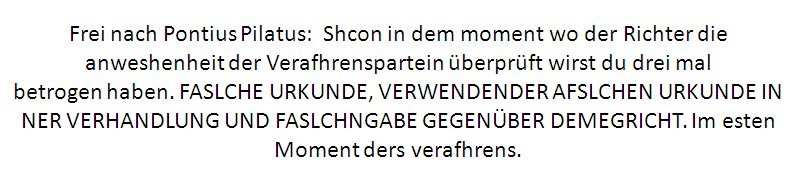 Frei nach Pontius Pilatus: Shcon in dem moment wo der Richter die anweshenheit der Verafhrenspartein überprüft wirst du drei mal betrogen haben. FASLCHE URKUNDE, VERWENDENDER AFSLCHEN URKUNDE IN NER VERHANDLUNG UND FASLCHNGABE GEGENÜBER DEMEGRICHT. Im esten Moment ders verafhrens.