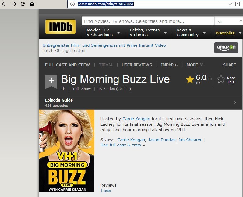 Netzrechecrhe http://www.imdb.com/title/tt1907886/ ergab daß für Leute die für VIVA zu alt sind sogar Bezahl-sender ?mit FAN-ARTIKELn? existieren. [0] "201802010955-170375598273-0.jpg" [1] "201802010955-170375598273-1.jpg" [2] "201802010955-170375598273-2.jpg" |