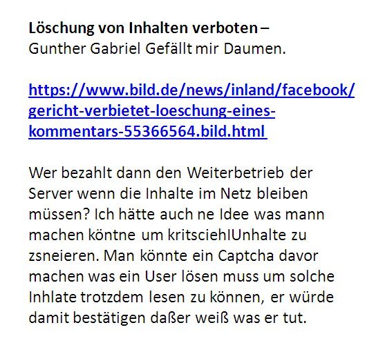 12.04.2018 08:37 Löschung von Inhalten verboten - Gunther Gabriel Gefällt mir Daumen. [0] "201804120837-172854541148-0.jpg" [1] "201804120837-172854541148-1.jpg" [2] "201804120837-172854541148-2.jpg" |