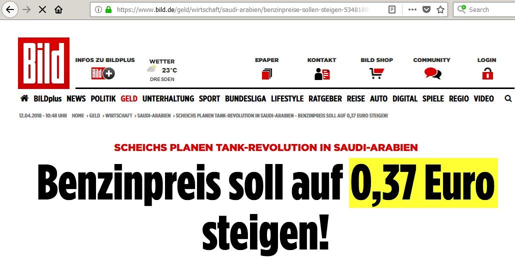 auf 0,37 Euro ! https://www.bild.de/geld/wirtschaft/saudi-arabien/benzinpreise-sollen-steigen-53481888.bild.html [0] "201804120940-172855433008-0.jpg" |