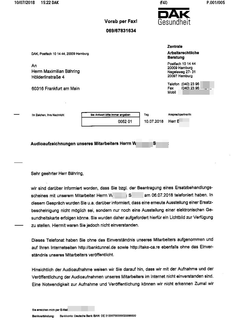 Geschädigten Max Bähring gegen die Krankenkasse DAK Gesundheit