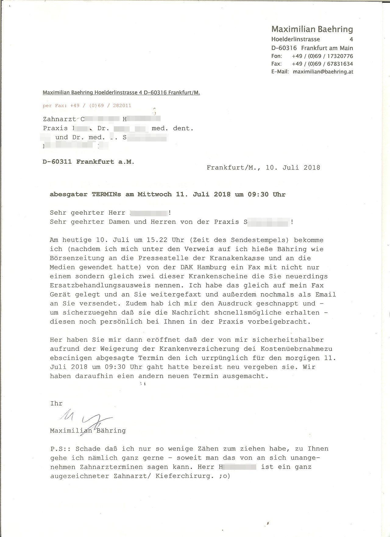 Maximilian Baehring Hoelderlinstrasse 4 D-60316 Frankfurt/M.