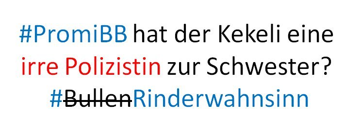 20.08.2018 07:18 #PromiBB hat der Kekeli eine irre Polizistin zur Schwester? [0] "201808200718-177205962298-0.jpg" |