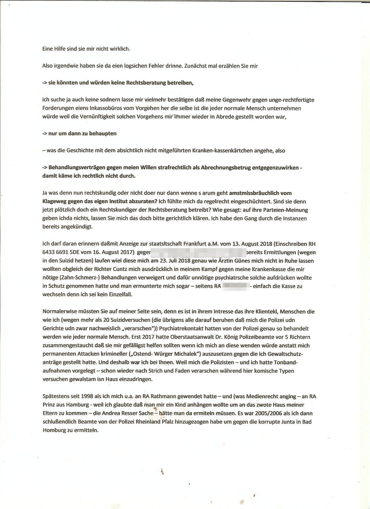 mein strafrechtliches Vorgehen gegen meien Krankenkasse auszureden als sei er ein